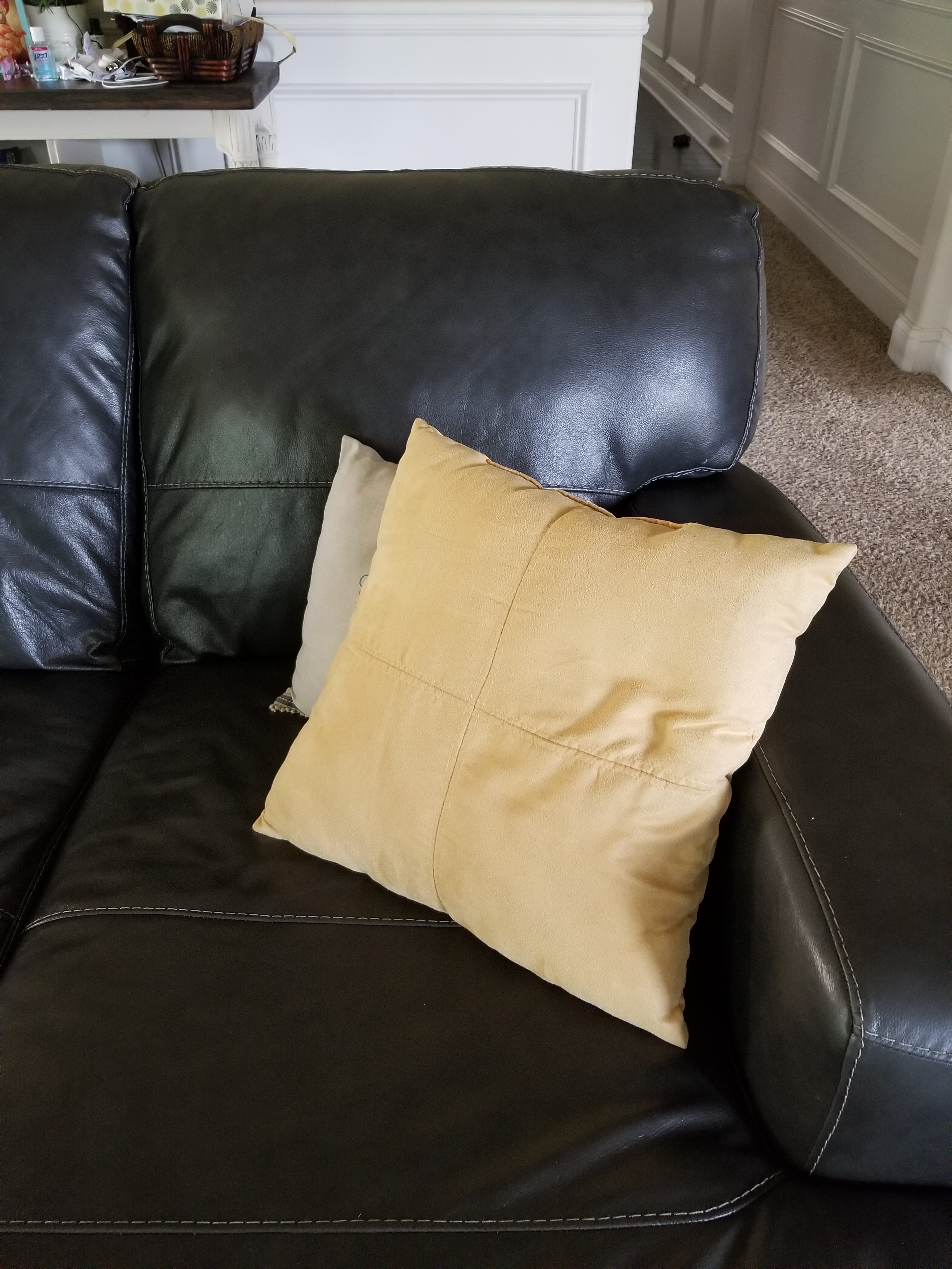 The first thing I wanted were some new throw pillows for the couch. I selected two gray ones that will work for other seasons and chose a large yellow throw pillow too. I had found another smaller yellow pillow on clearance at Walmart earlier that week so it was perfect!