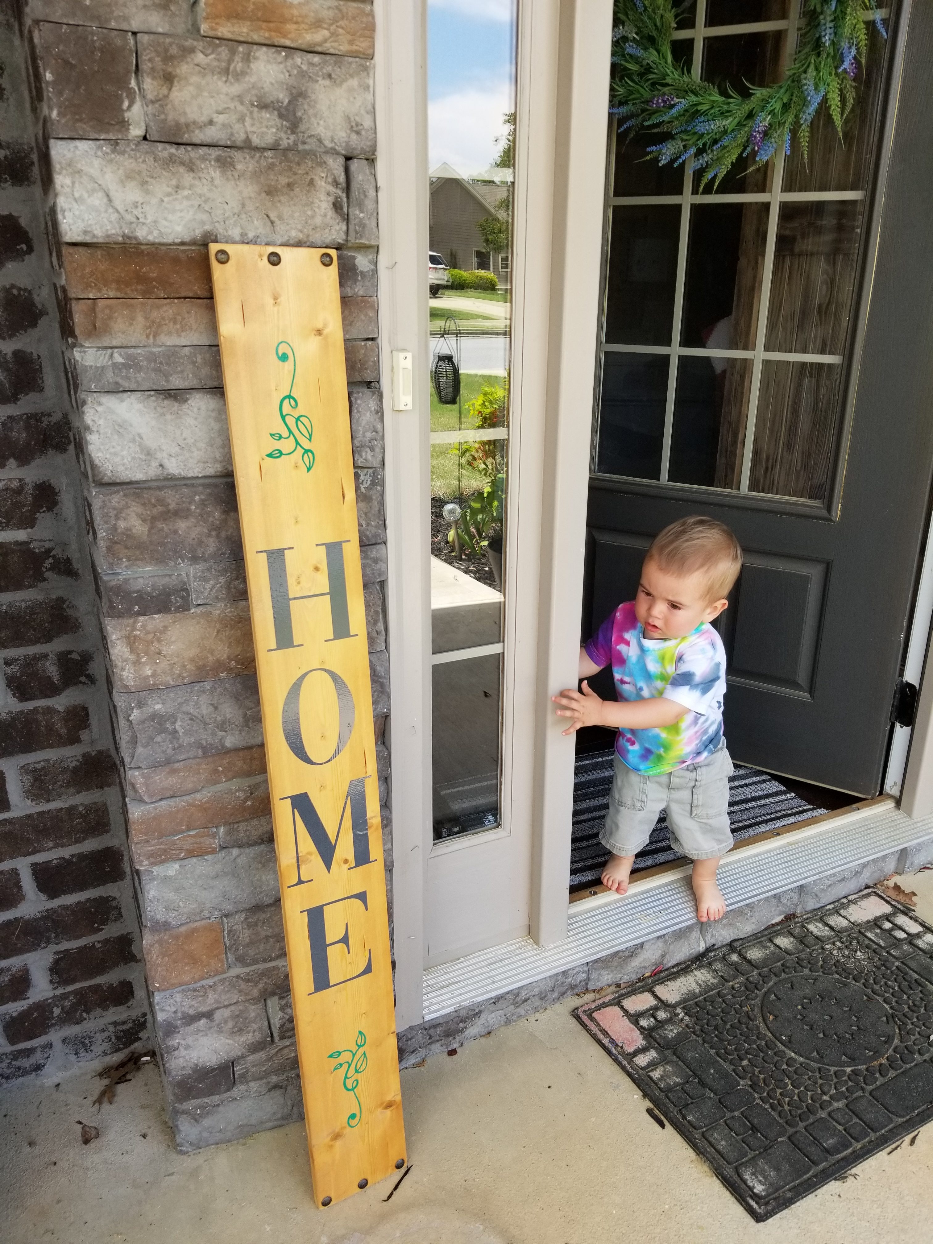 Lastly, I found a pillow at Home Depot for our front porch. The sign I made during the Christmas break with my cricut machine.