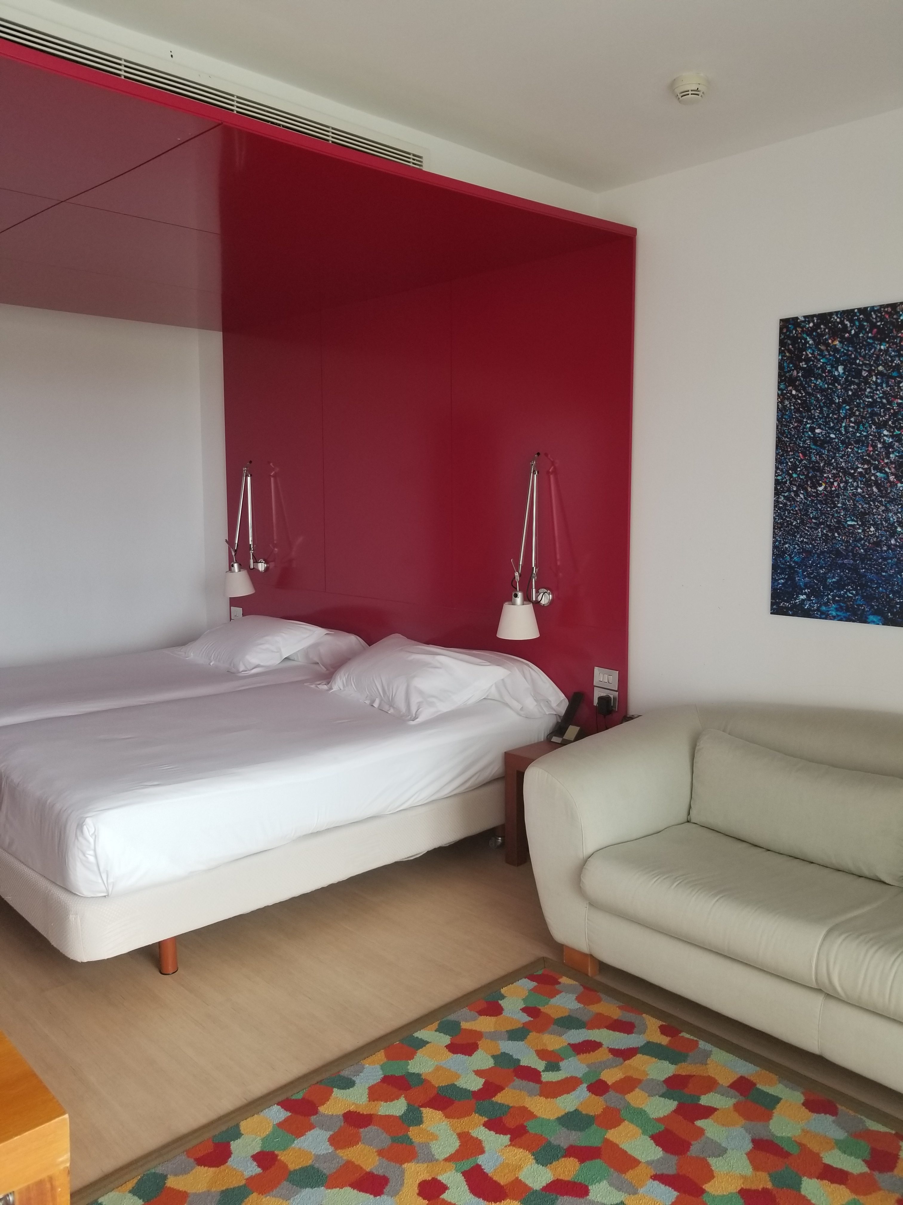 We stayed at the Doubletree by Hilton hotel spa emporda about 40 minutes from Girona, Spain. We used hotel points to book two bedrooms and our breakfast was included. We were very impressed with our accomodations. Our rooms were spacious, tastefully decorated and overlooked the golf course. Breakfast included a spread of European meat and cheeses, fruit, typical American breakfast (eggs, bacon, sausage), pastries, artisan breads and more! We would definitely would book this hotel again!