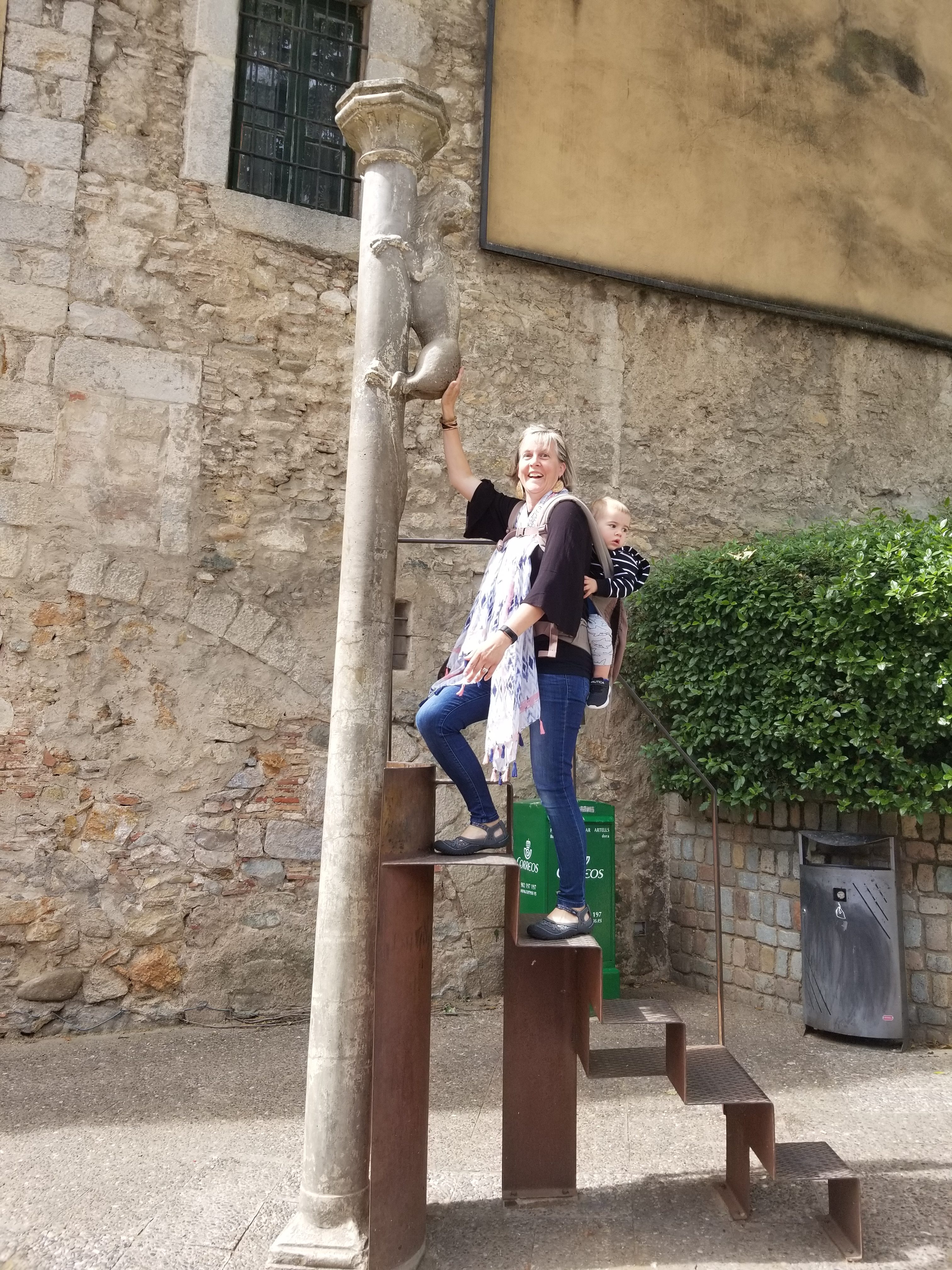 In the first picture I am kissing the lion’s bottom, a sign of allegiance to Girona and it is said that “you are not a good citizen of Girona if you do not kiss the lion’s back”. School children waited in line to do the same as they were on a field trip from school.