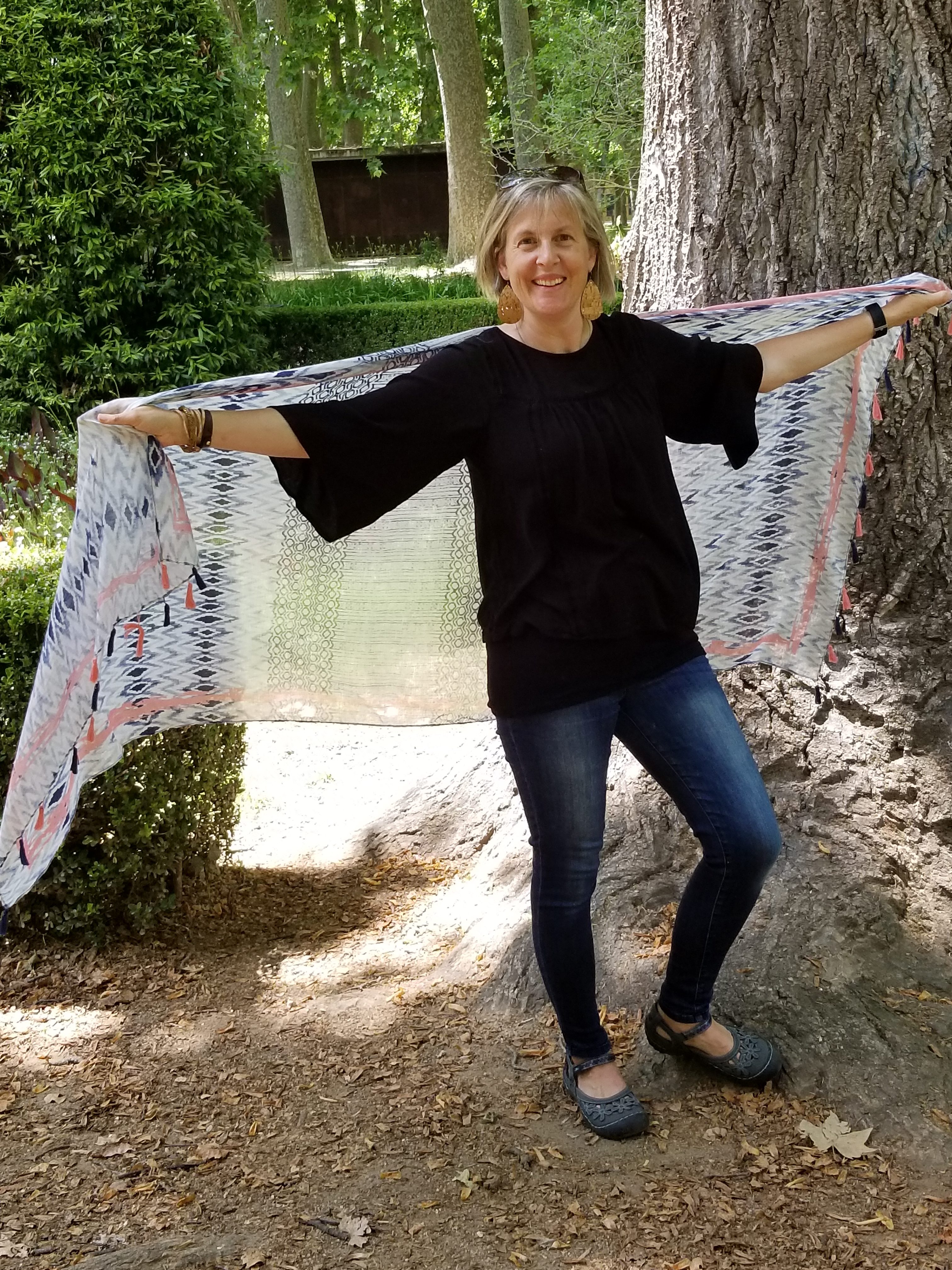 This is my last day’s outfit. You can tell by my tired eyes that I now need a vacation from my vacation! This pretty cardigan wrap was made by my friend Veronique @jolikrea as an early birthday present for me and I will be writing a whole post about it showing how it can be worn. I did take more pictures that day but I was too tired to do a great job showing the versatility of the cardigan so I will take more soon! It is perfect for wearing most of the year here in the south of the US.