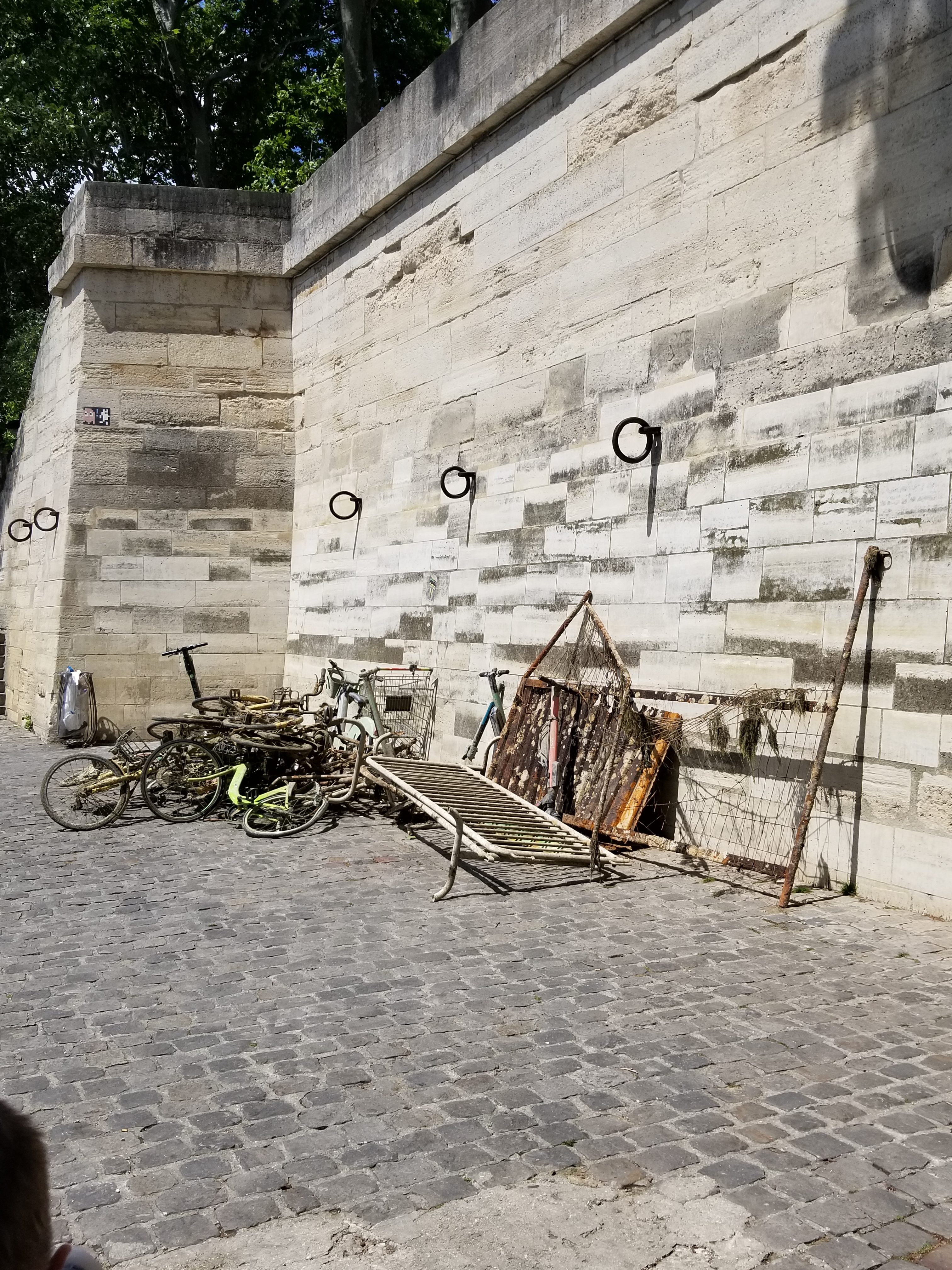 The second picture is of the different things that have been fished out of the river. We observed a man trying to pull out a scooter for a while.