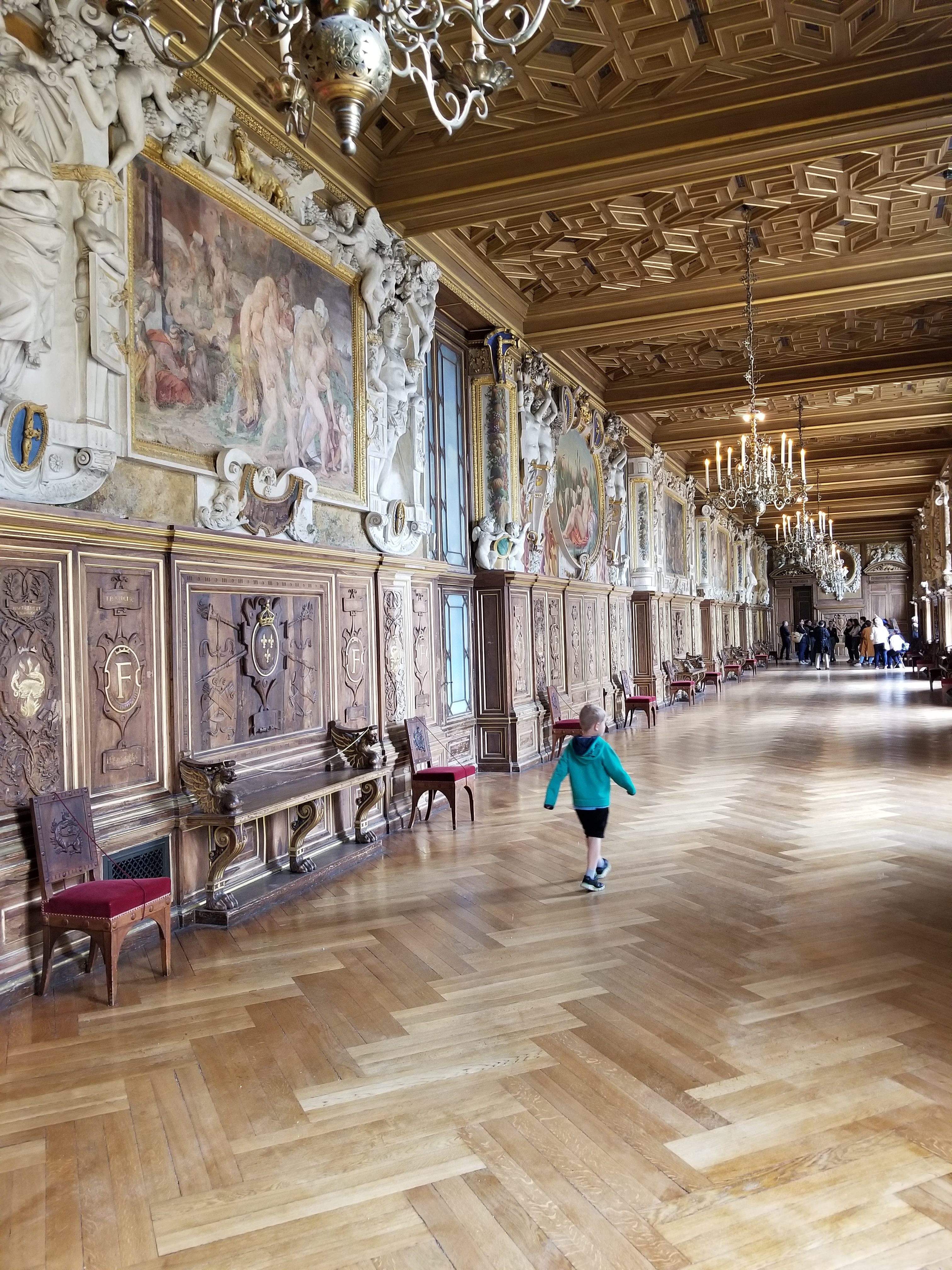 Since my husband and I had never visited the inside of the palace and the day was forecasted to be rainy, we drove to Fontainebleau with a picnic lunch and enjoyed a couple of hours visited the grandiose rooms of this palace. There was a art festival going on that day so admission was free which is always wonderful news for this budget minded mom. I think that children are always free and adult admission is usually about 14 euros so still not an expensive outing if you have to pay admission.