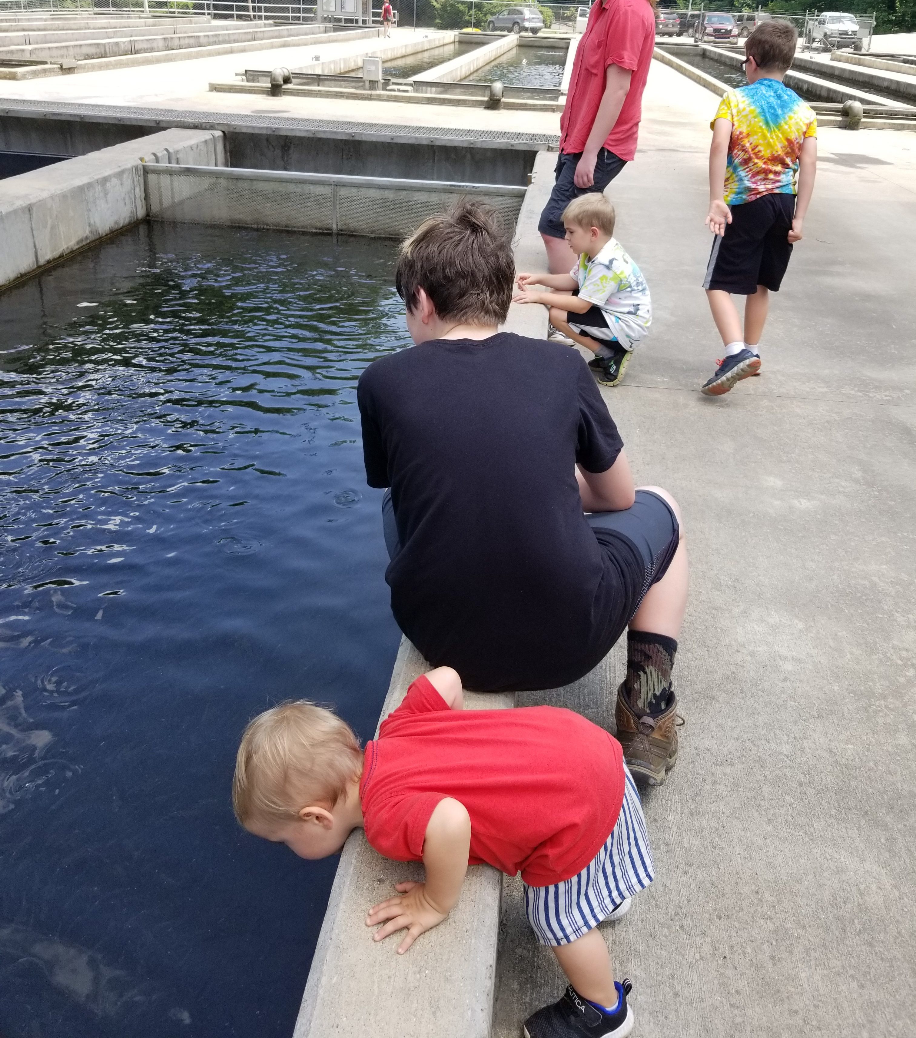 The boys enjoyed watching the fish from baby ones to larger ones. The hatchery produces about one million rainbow trout each year and stocks streams and lakes of Northern Georgia and is free to the public.