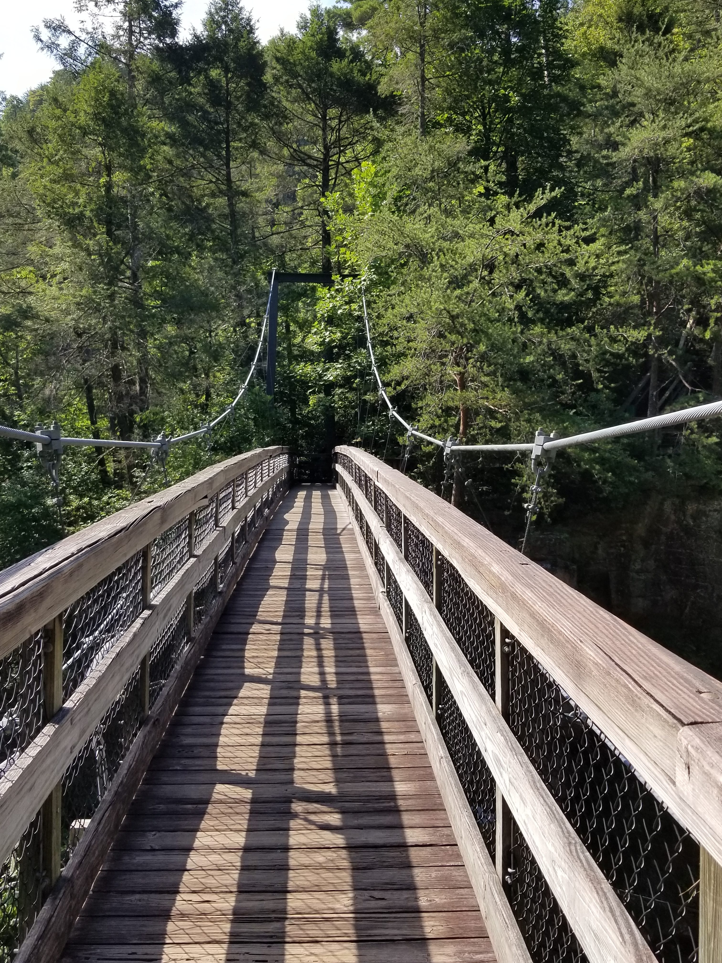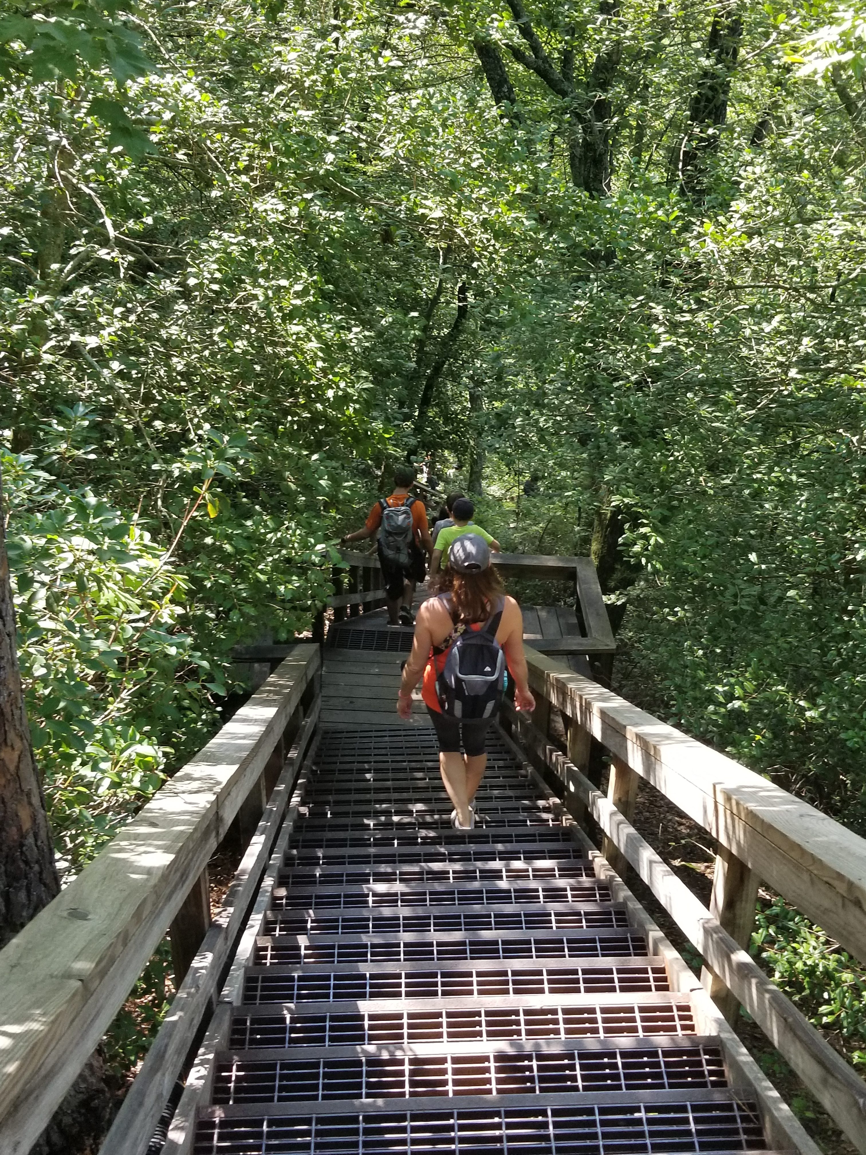 Most of the hike was shaded but I was surprised at how much we were sweating even though it was only in the 80s. That is probably because of all the steps we walked down then up. It is 310 steps down to the suspension bridge, then a little over 240 down to the floor of the gorge then you have to climb those steps back up and add 347 steps/stairs to the south rim.