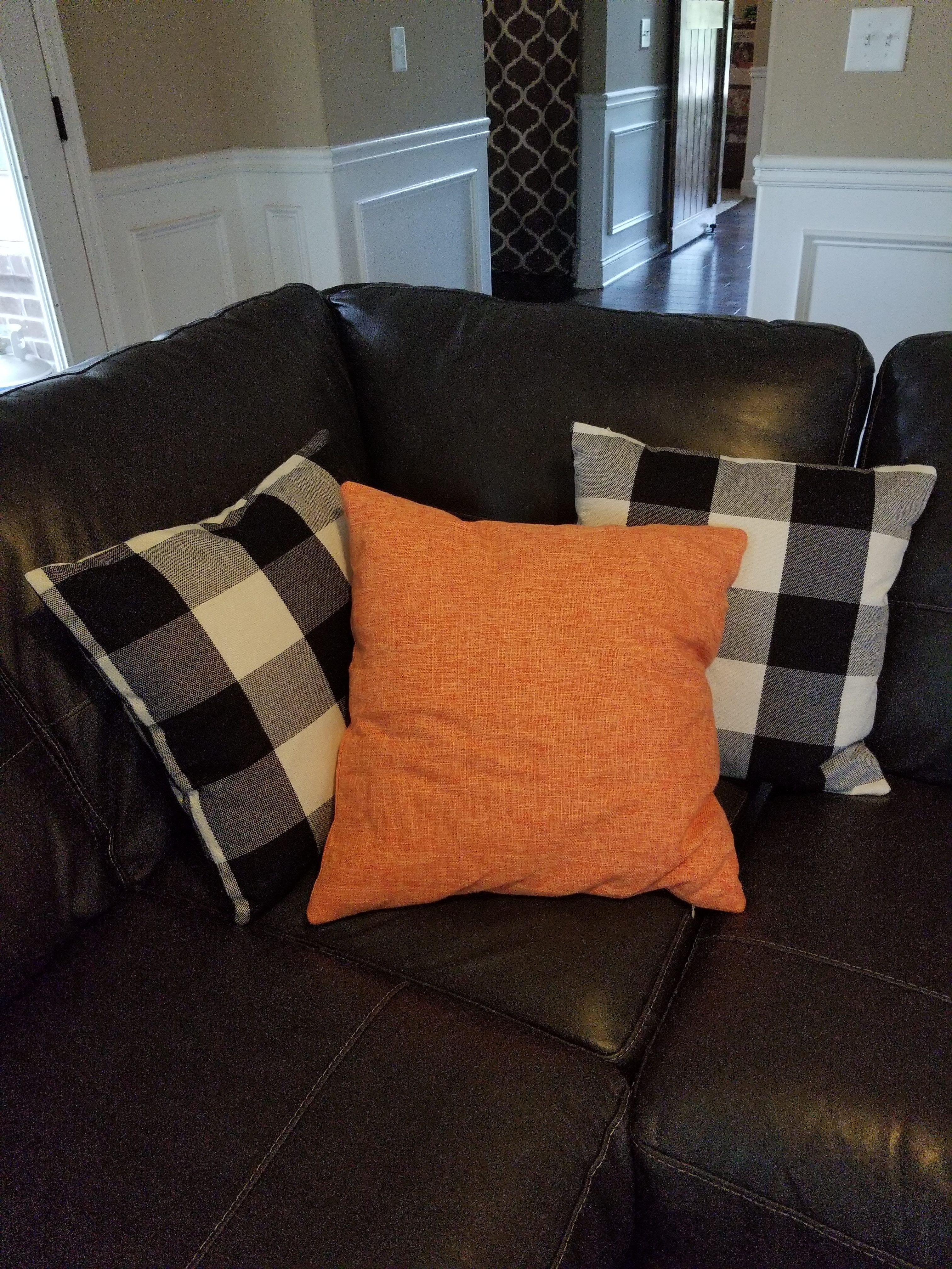 So the cost of my decor for this year was 0 until I bought some pillow covers! I bought 5 pillow covers for a total of $20. The covers are nice and thick and of good quality! The plaid pillow covers and the orange pillow cover are made of a burlap material. I used the extra orange cover for one of my outside pillows. I am pleased with my decor and don’t see me adding much to it next year apart from maybe a few diy wood projects!