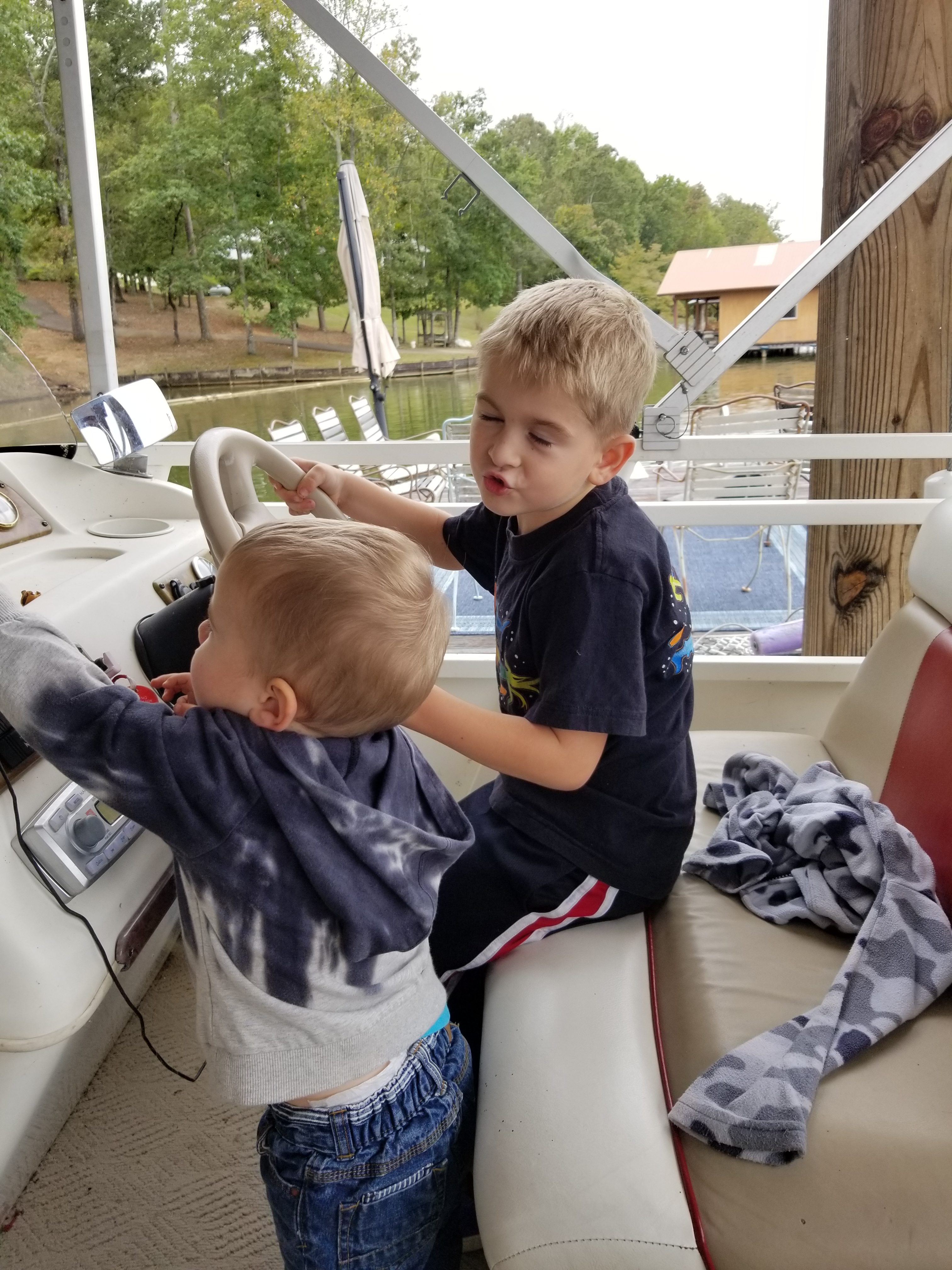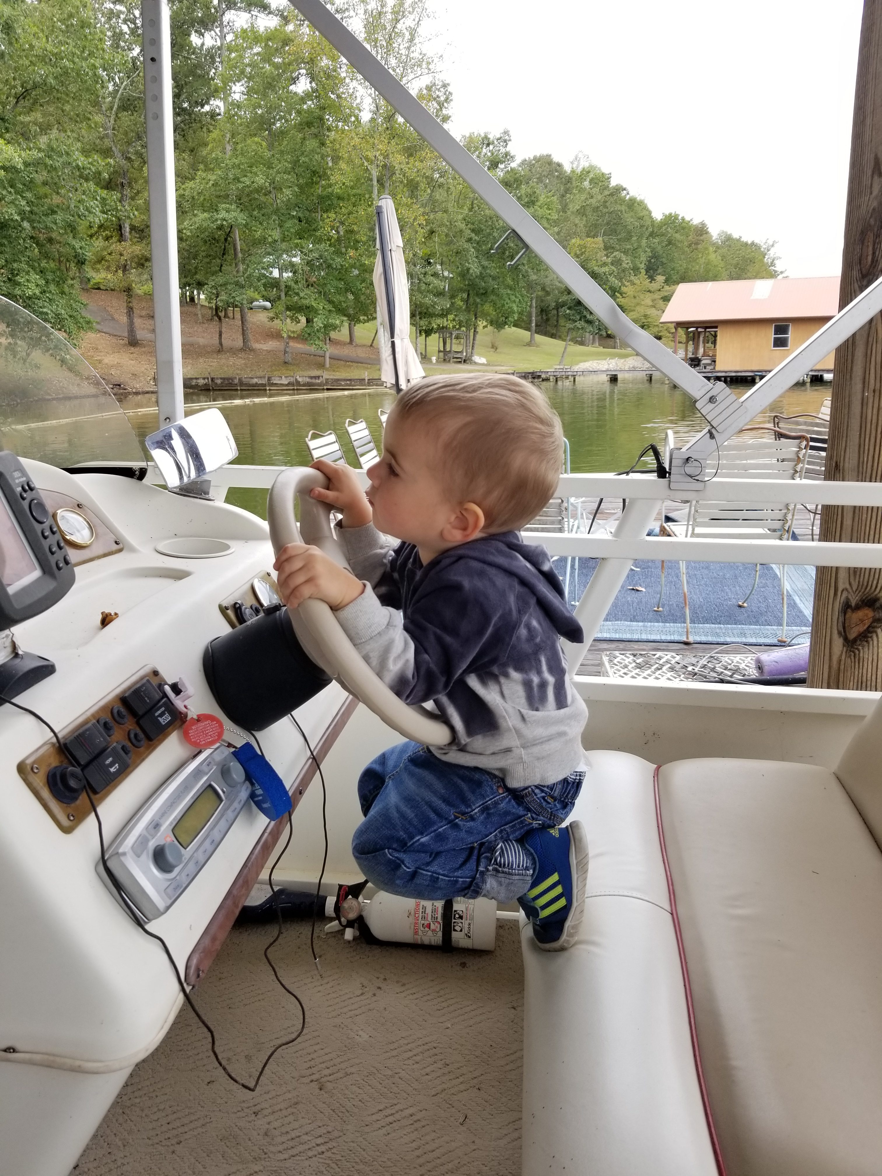The littlest pretended to drive while we were still at the dock.