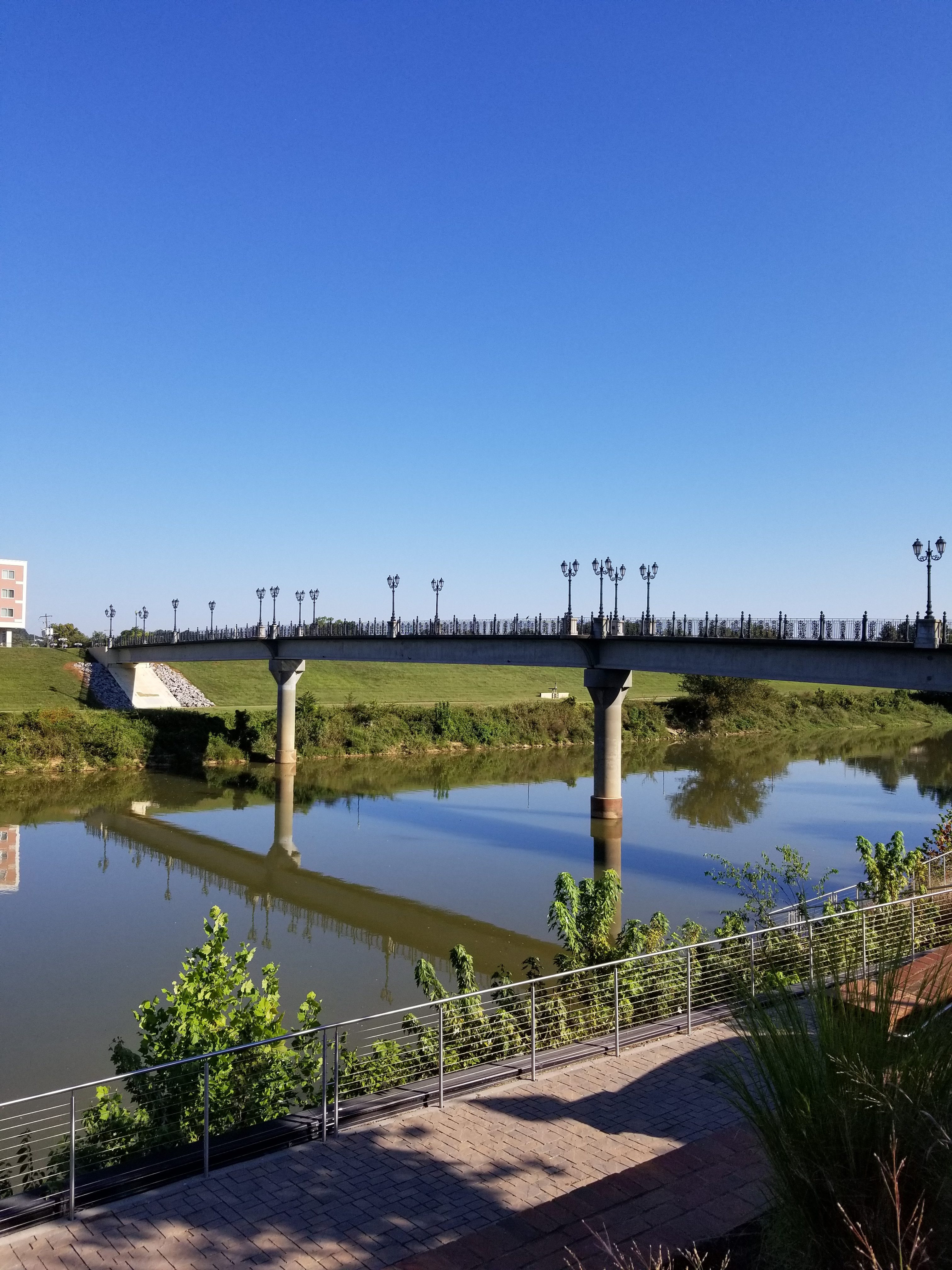 The area is well maintained with a beautiful bridge with iron work and benches and different spots to sit. My parents enjoyed the sunshine while we walked accross the bridge. On the other side is a hotel which would be fun to stay at with the views and proximity to the shop in the downtown area.