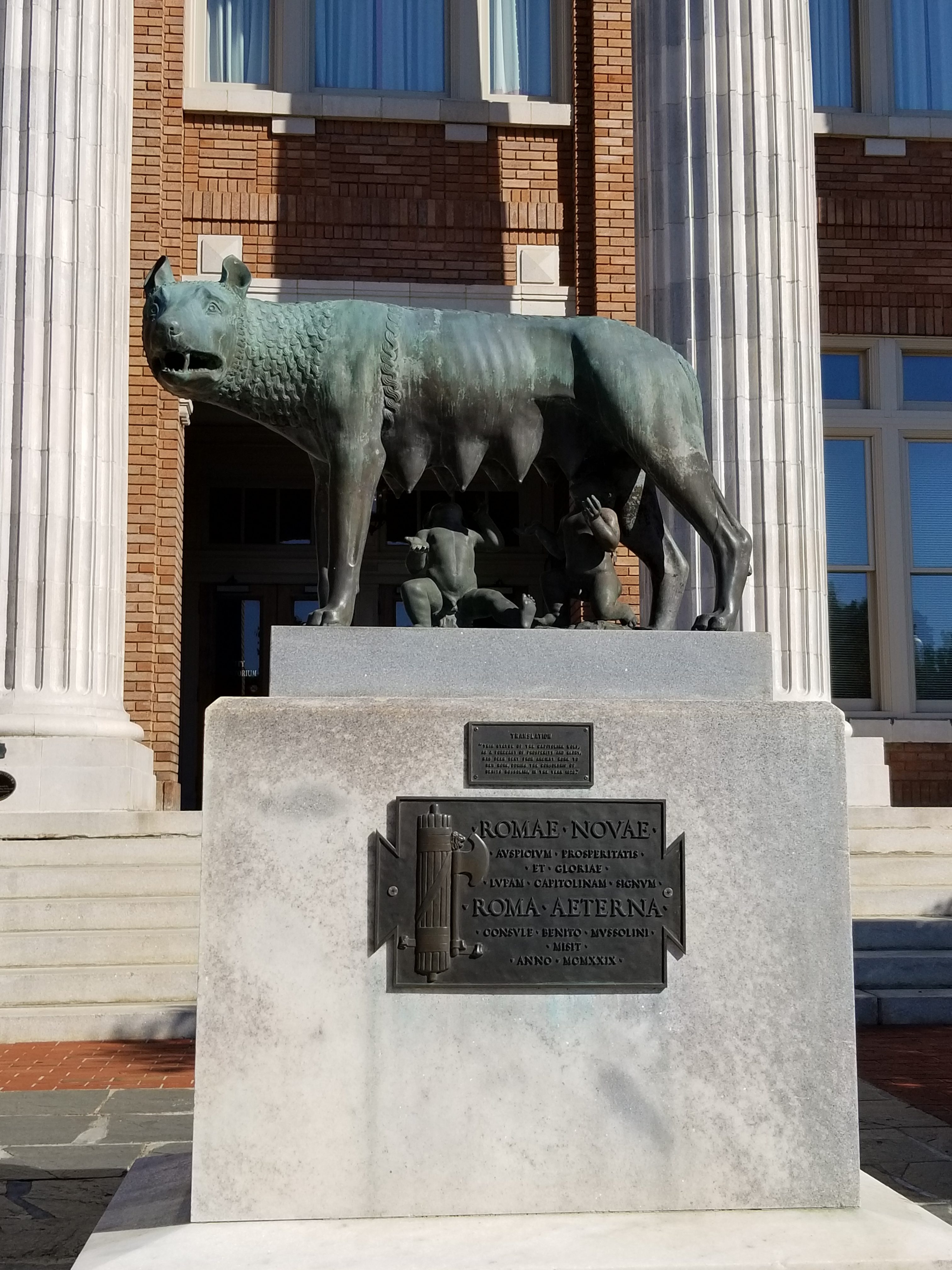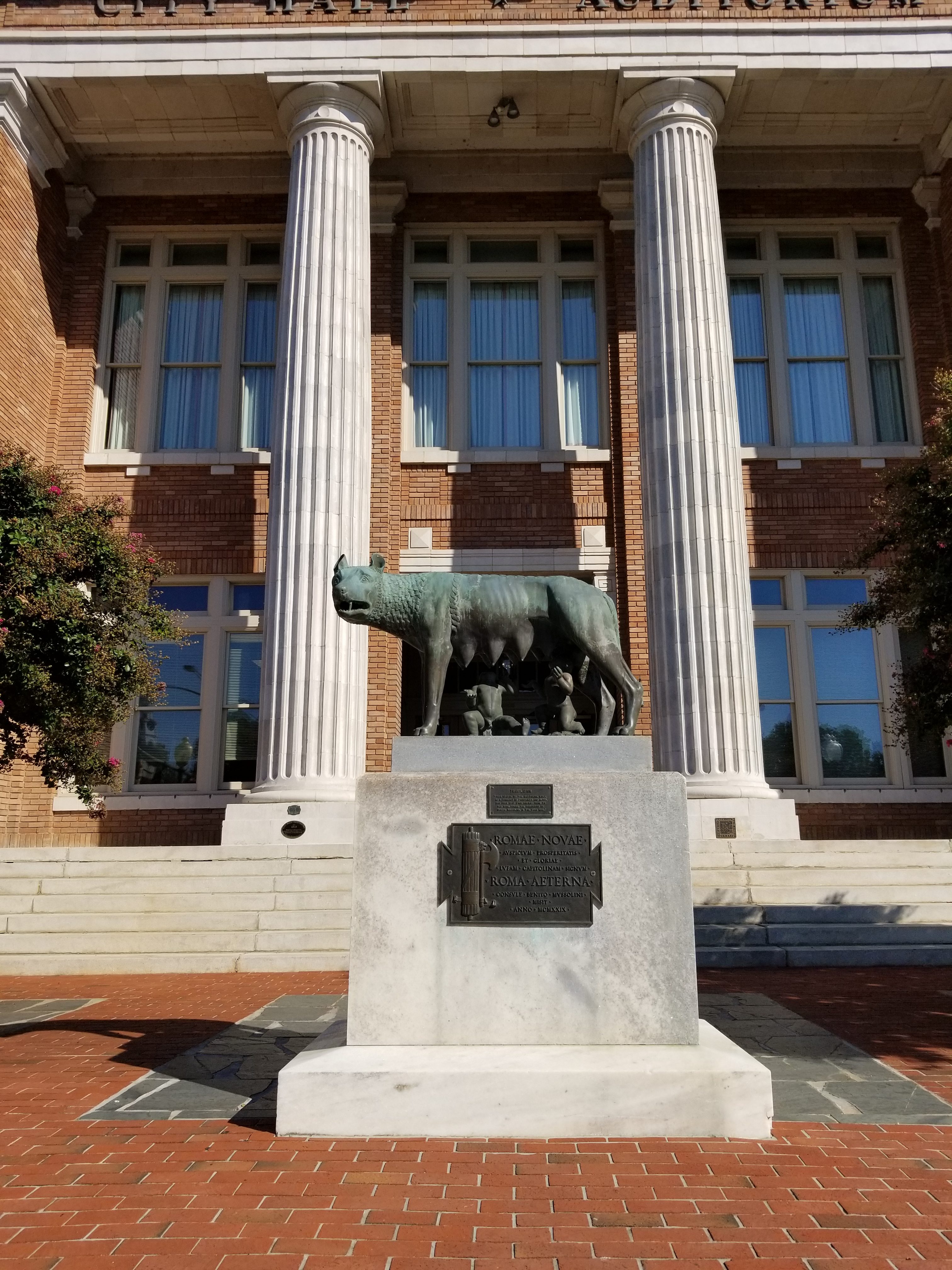 The fountain reminded me of all of the fountains in Rome, Italy. Another nod to its namesake is the Capitoline Wolf sculpture which is a miniature version of the original and was gifted by Mussolini in 1929.