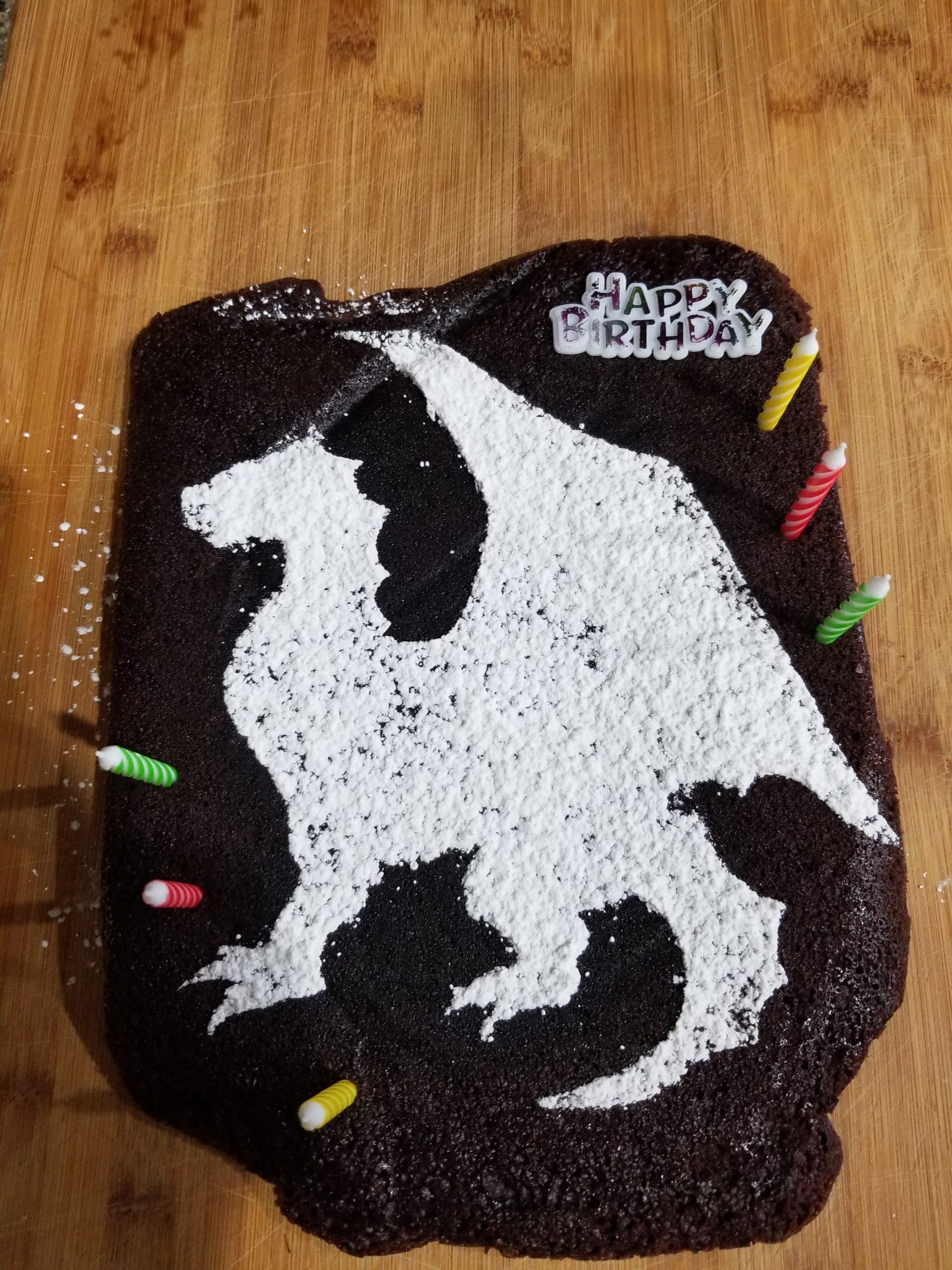 I had thought about ordering a cake from Publix for a change but they didn’t have anything dragon related and I did not think a sheet cake would be that create. After thinking about it, I figured I could make my own stencils to create fun dragons and he loved it! And to boot, it was very inexpensive! Birthday on a budget!
