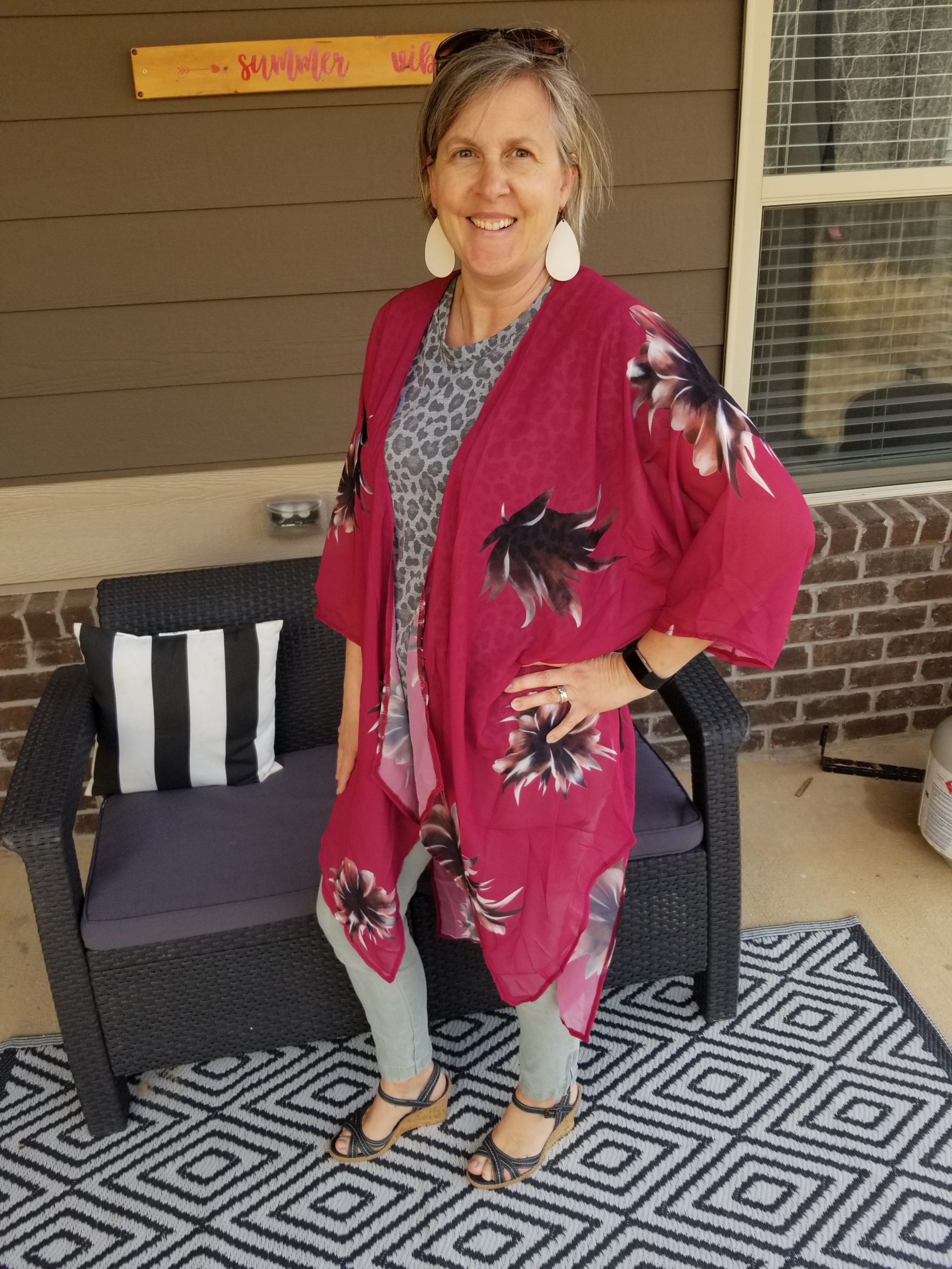 Welcome to the Sunday Showcase! Today we are visiting the idea of kimonos: there are many different types of kimonos with  different length, fabric and cuts… and they are very versatile pieces to have in your closet. I have a couple of light weight floral kimonos and a few solid kimono/cardigans. Ada and I are sharing ways to wear them casual or dressy. At the end of the post, I will have a little slideshow of my kimonos so you can really see that versatility! Don’t just wear yours one way! They are meant to be fun, add a little whimsy to an outfit! Make sure to visit Ada’s post to see more inspiration!