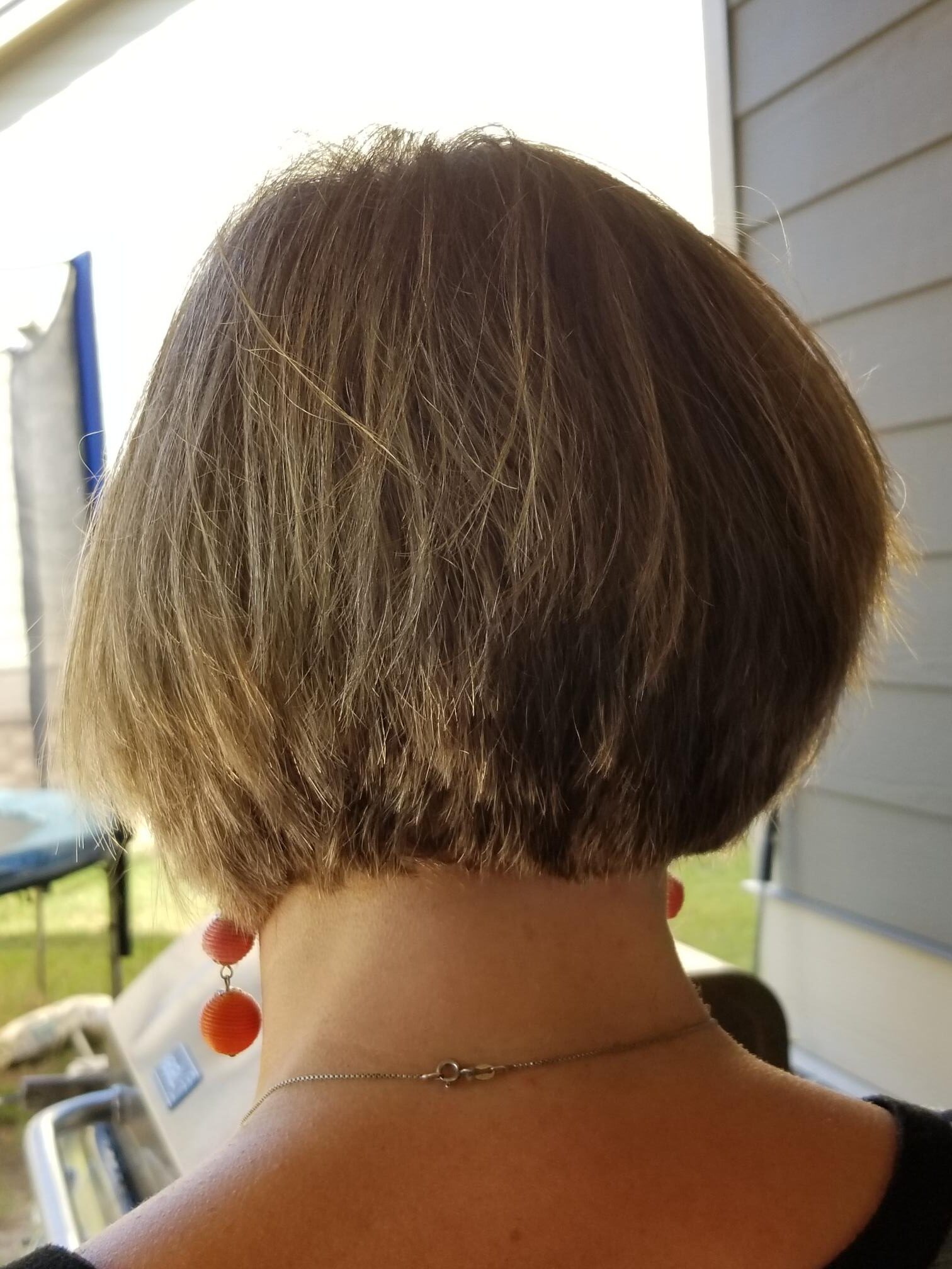 By now you all know how low maintenance I am as far as make up and hair goes: I rarely wear makeup and only use chapstick and gloss daily and I really don’t do much with my hair. I have had different haircuts over the years and have tried growing out my hair a few times but I always come back to this haircut. Short bob with a fun cut in the back. I only have to blow dry it after a wash and then just comb it every morning. In today’s post I include 2 sets of pictures taken after my haircuts, probably 5 months apart.