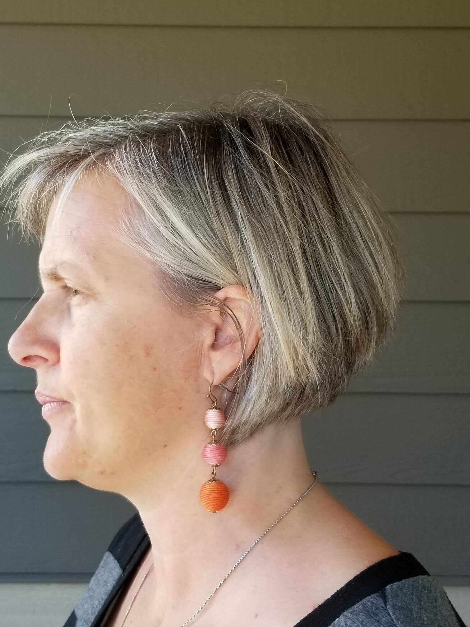 I love short bobs but have been trying to grow it out for the last couple of years. My hubby loves long hair so I prefer to keep it long even though he says he will love me any way I wear it. I cannot bring myself to let the grey come out. Lol! Your cut is so chic!