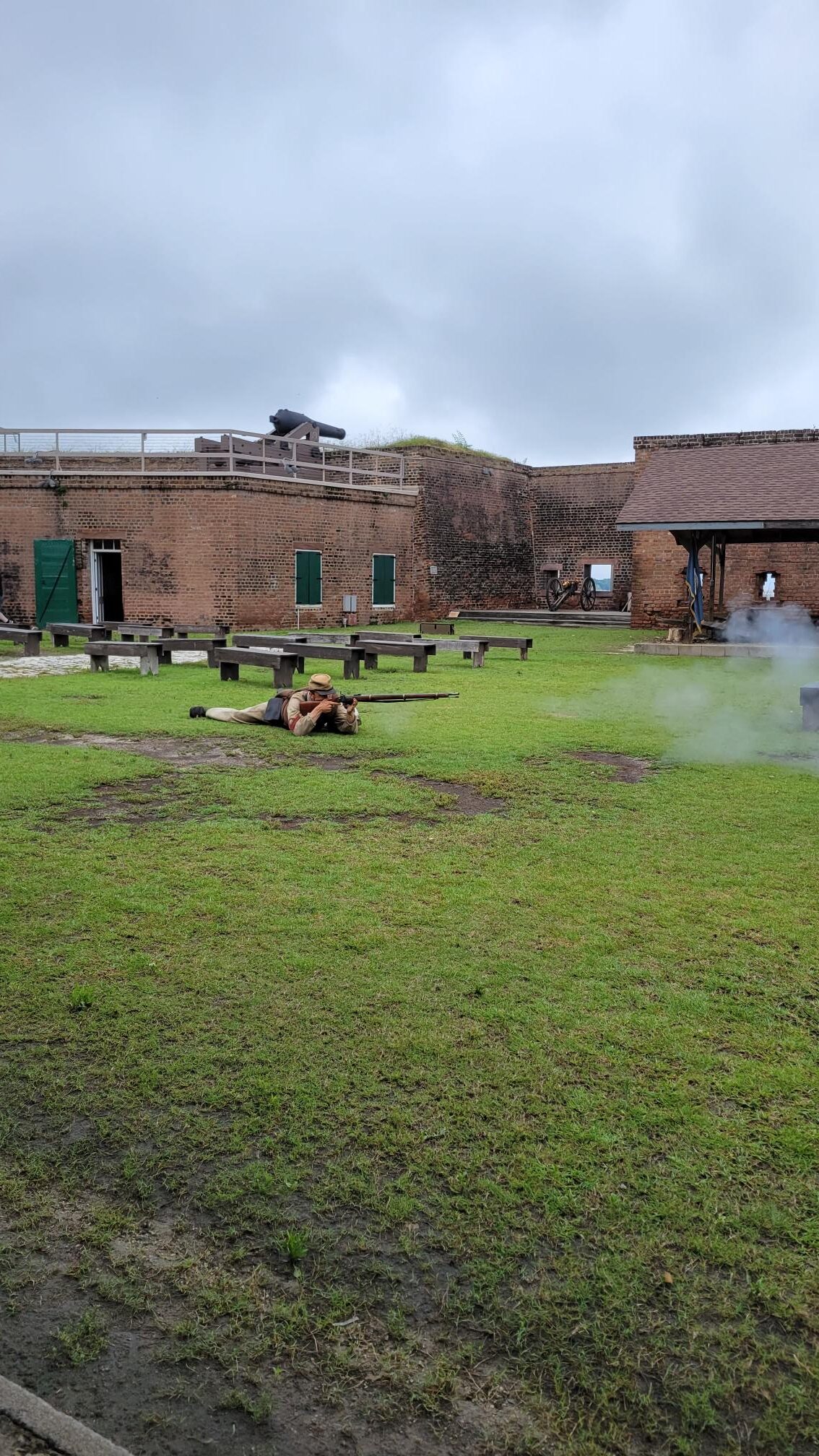 We arrive just as they shot the cannon and there was several presentations by a young man in uniform for the following couple of hours. There was some time in between each little sesssion so we were able to explore on our own. We learned about how to fire the cannon, the communication from fort to fort through codes sent by flags, how the first triage and ambulance worked (and more than I knew about amputation!), and how the riffles worked.