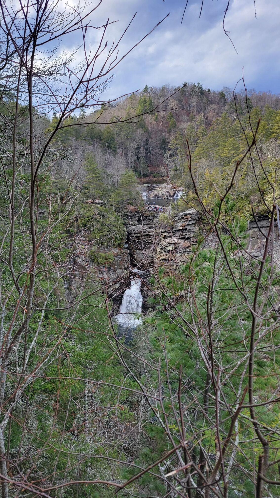 Linville gorge and falls is in the mountains of western North Carolina and is part of Pisgah National Forest. The river drops 2000 feet below and that was one of my favorite views of our hike.