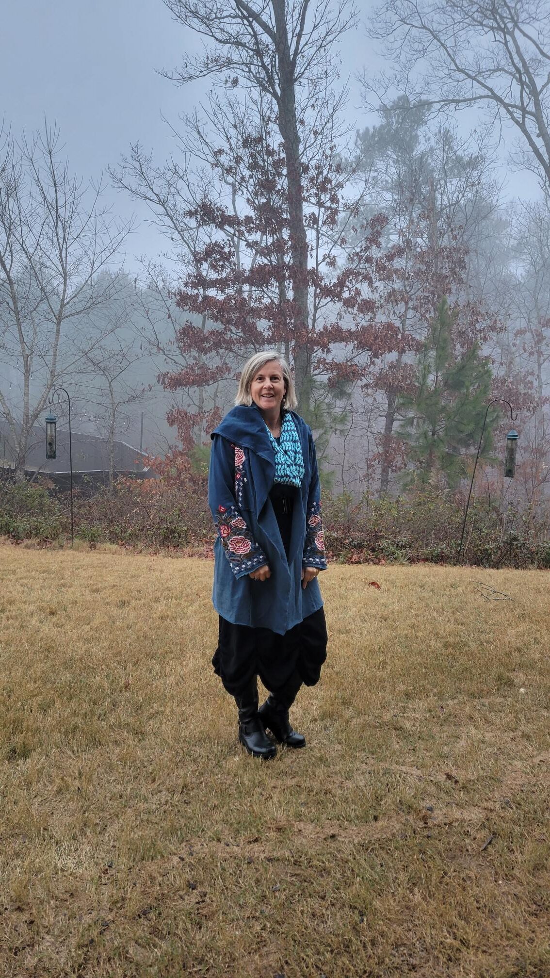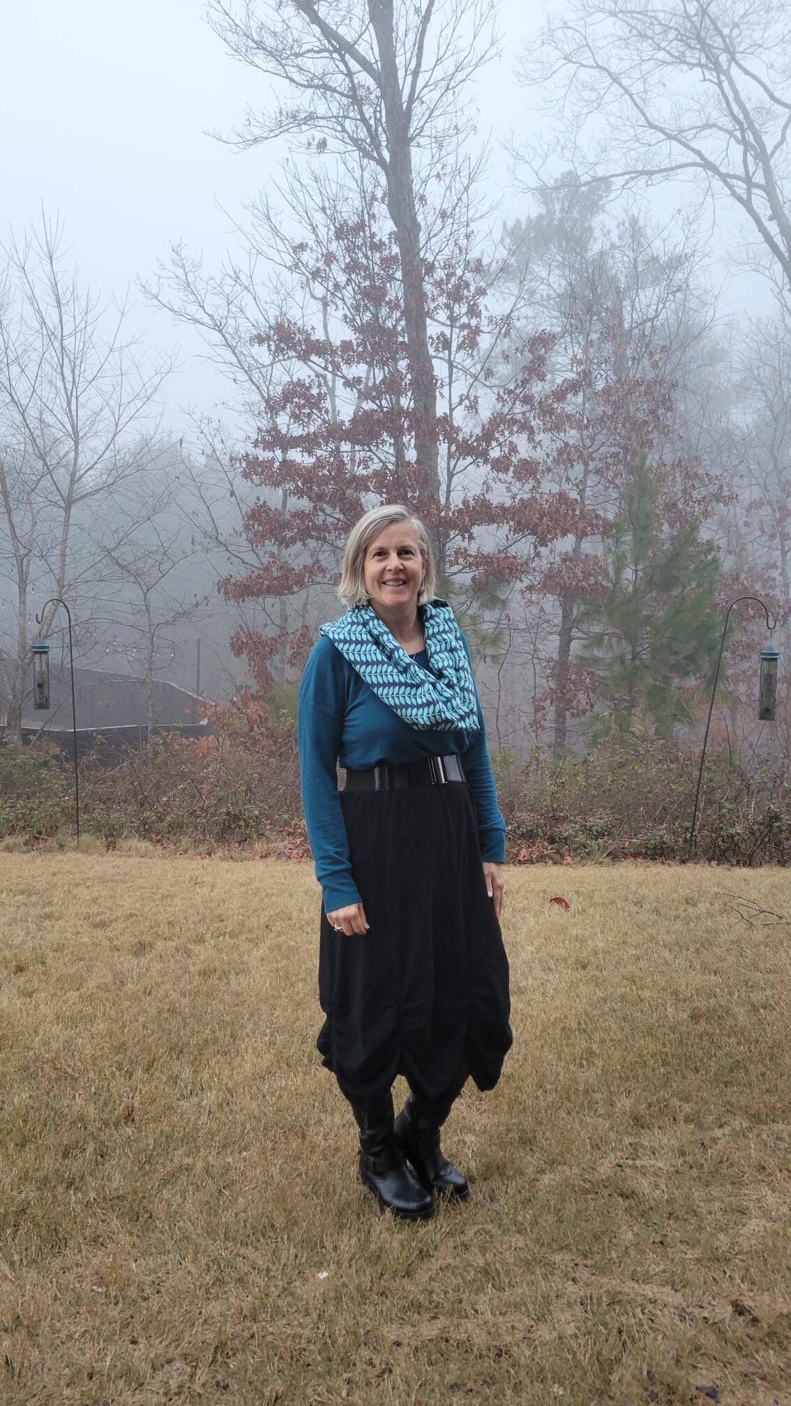 I like all of these very much. As I scrolled down through the pics, each new one became my favorite. But going back over the post, my overall fave is the blue with that great funky skirt and the scarf and gorgeous wrap. That is YOU to me. Which is your favorite? To think you found that wrap on Poshmark!! Wow!!