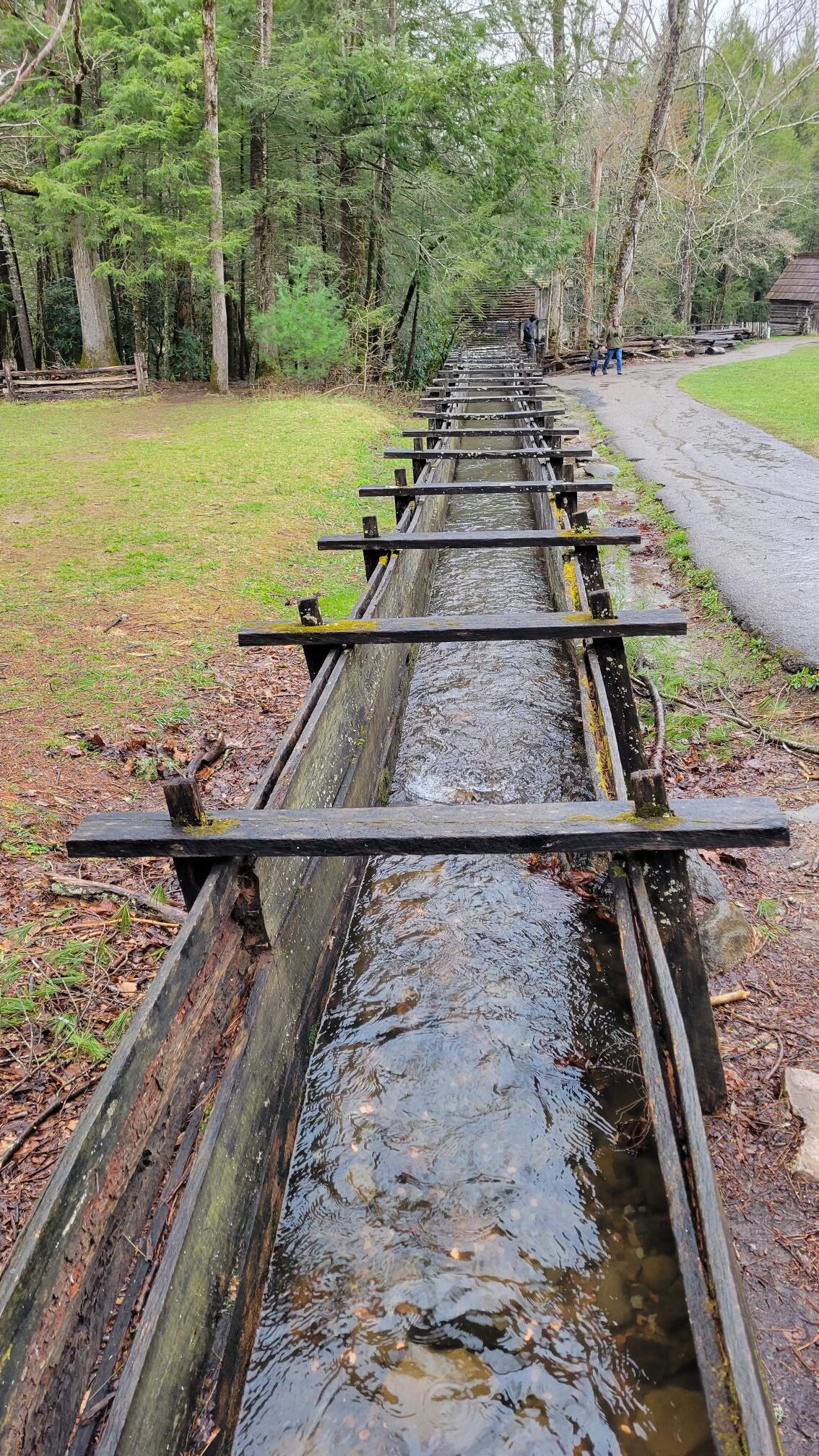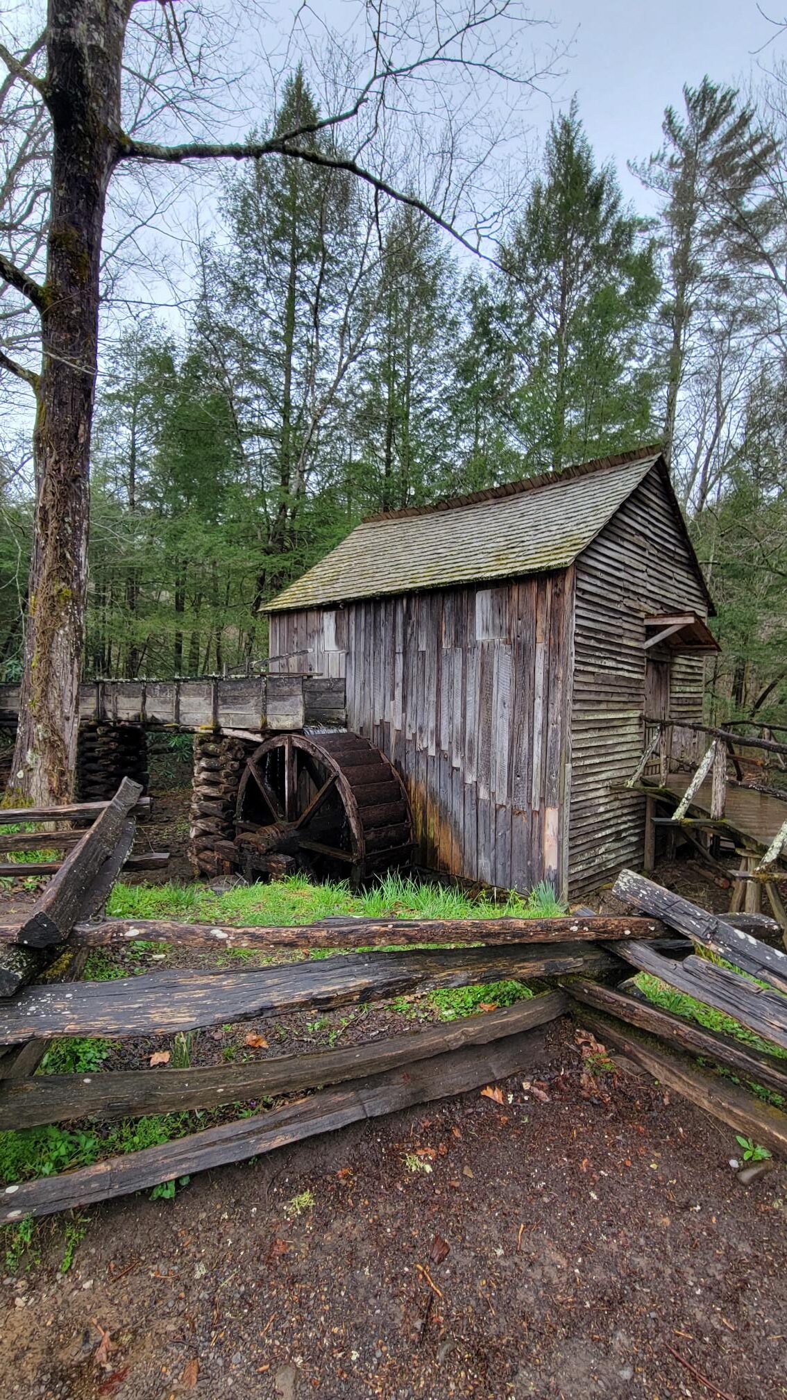 The cable grist mill was built in the 1860s. The mill redirects a stream to a wooden water wheel. This is the only original mill that has survived (there were 6 to 7 in Cades Cove at a time).