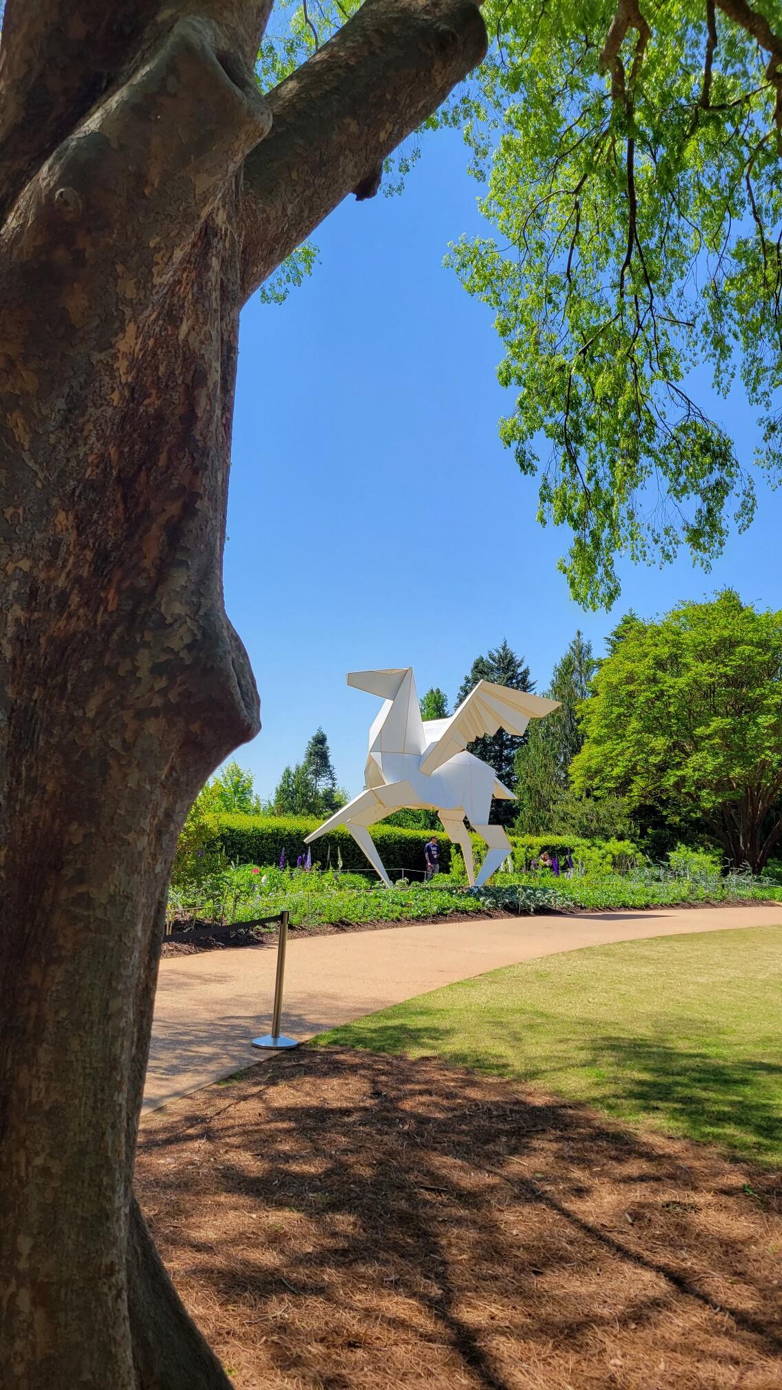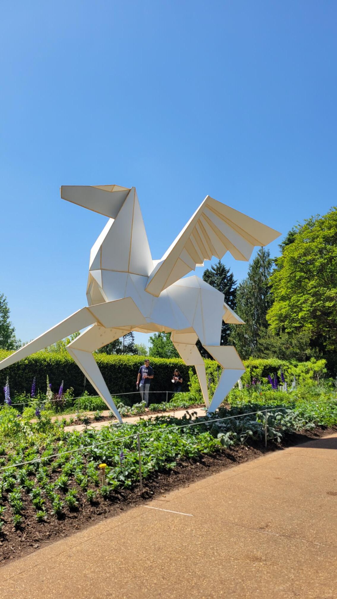 When I looked online at what was new at the botanical gardens (it had been years since I had been) I noticed that the Origami event would start on May 7. It has 18 installations and some of them are quite large. I was disappointed that we would miss it but it turned out that most pieces were already set up since it takes a while for all of them to be lifted in place.