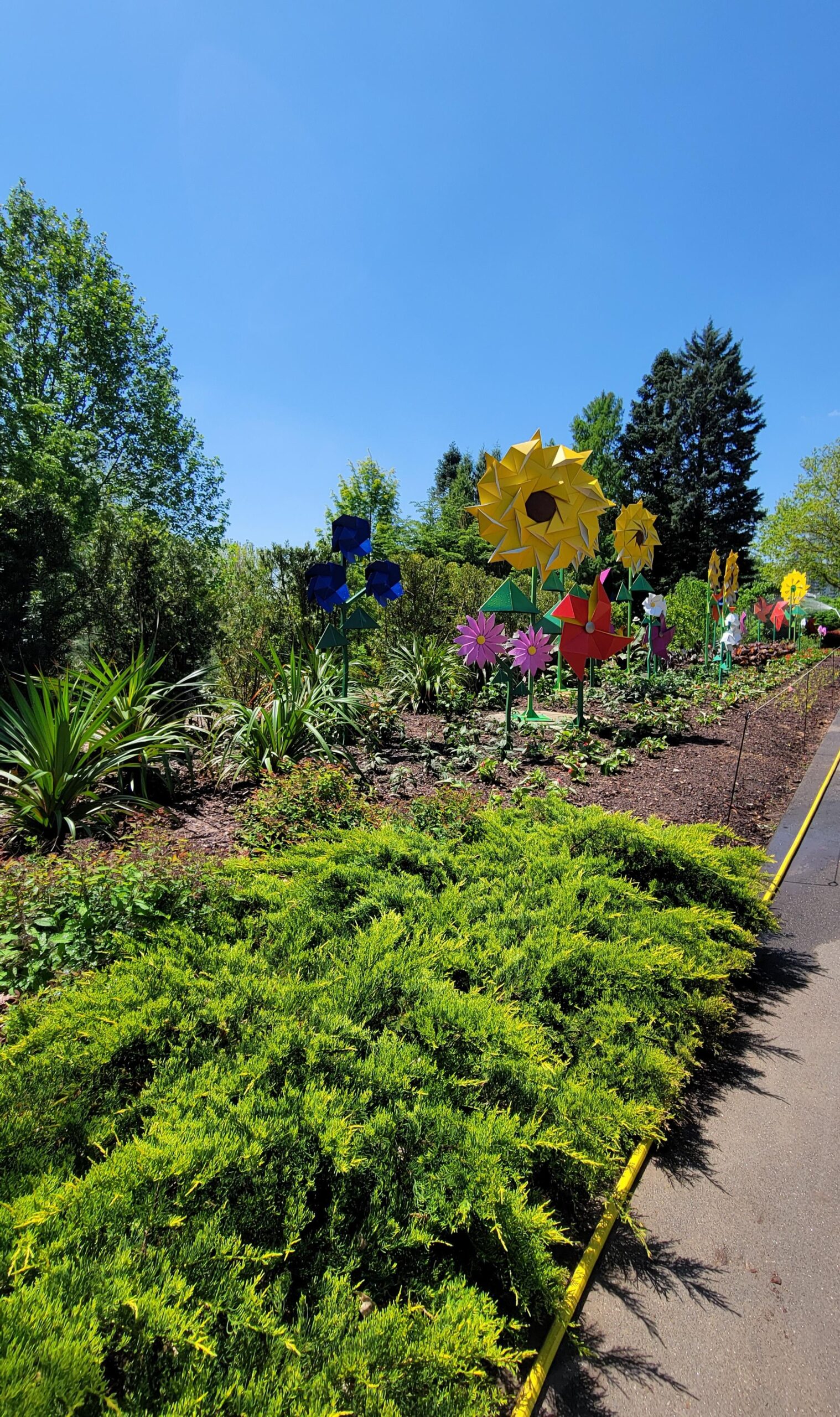 I do like that the gardens have permanent pieces (glass sculptures etc) from past exhibits so I am curious if any of these will stay and become part of the garden. Again, I will share those permanent pieces in next week’s post. By the way those pinwheels do move in the wind.