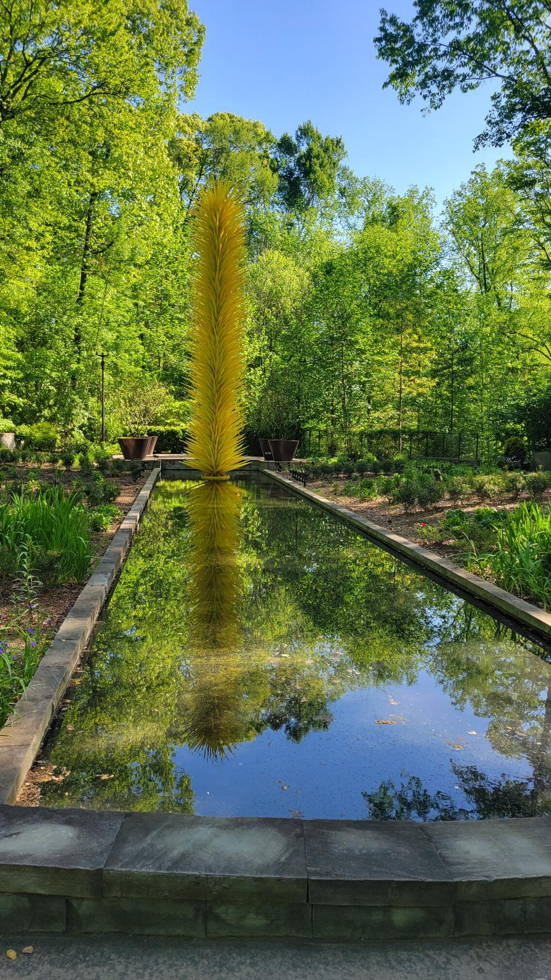 In the same area of the gardens (it did take us a few wrong turn to get to it), you can admire the new Chihuli yellow icicle sculpture. I actually thought this was a live plant from afar but no, it is a very impressive glass sculpture!