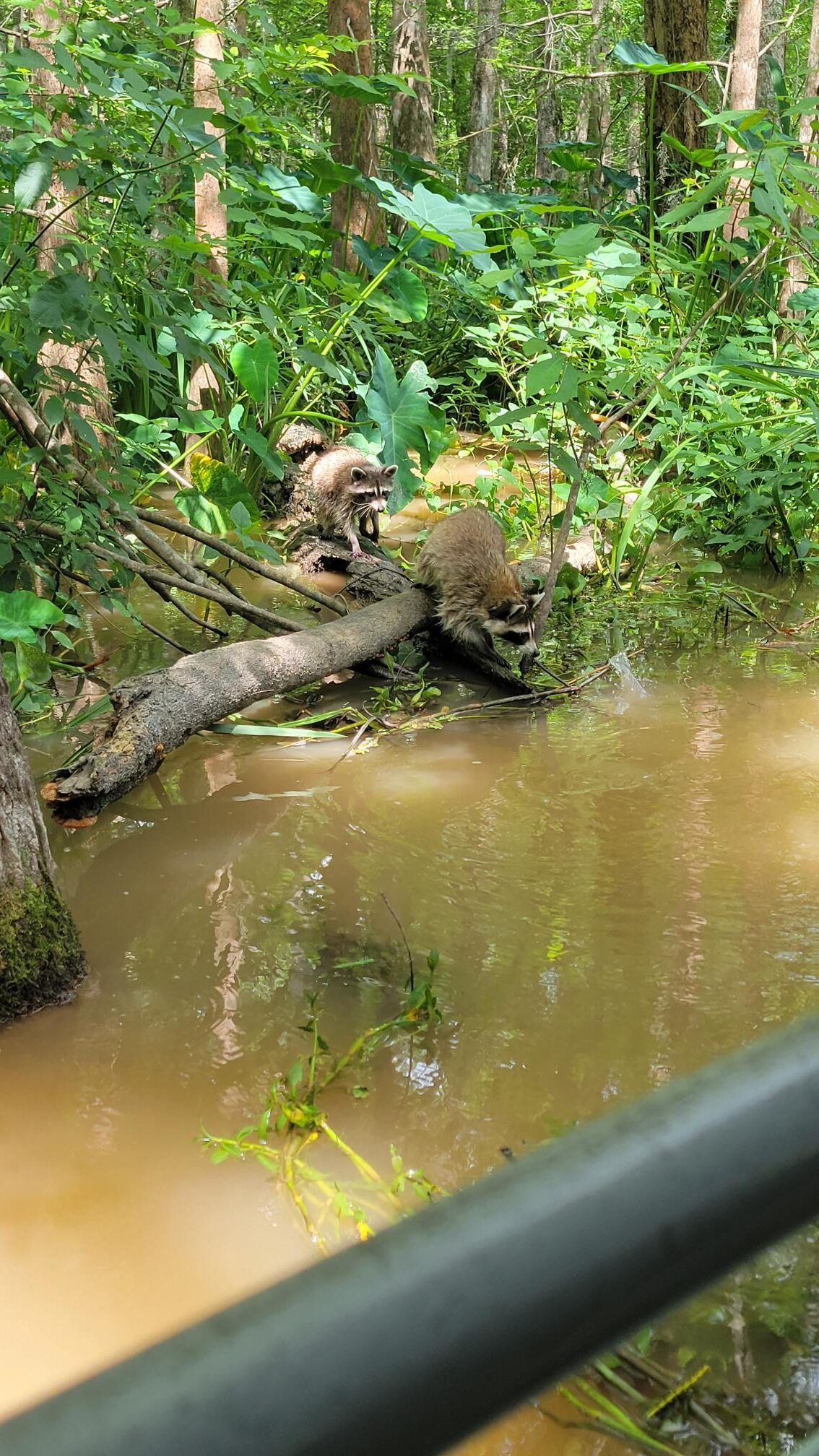 The raccoons had to look out for the alligators! I was surprised to see the raccoons out but as the alligators they probably know the likelyhood of receiving some food, in this case dried corn and a protein pellet.