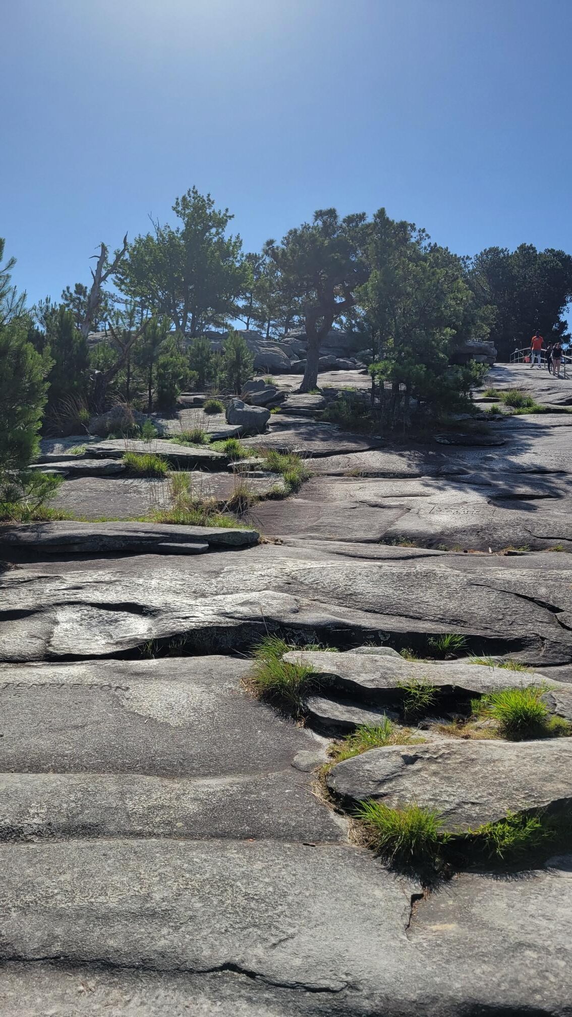 We also make sure to walk in the shade as much as possible. For the first part of the hike, we were able to do that by sticking to shade of the pine trees. Stone Mountain boast the largest exposed mass of granite in the world. So when you walk up, you are walking on granite.
