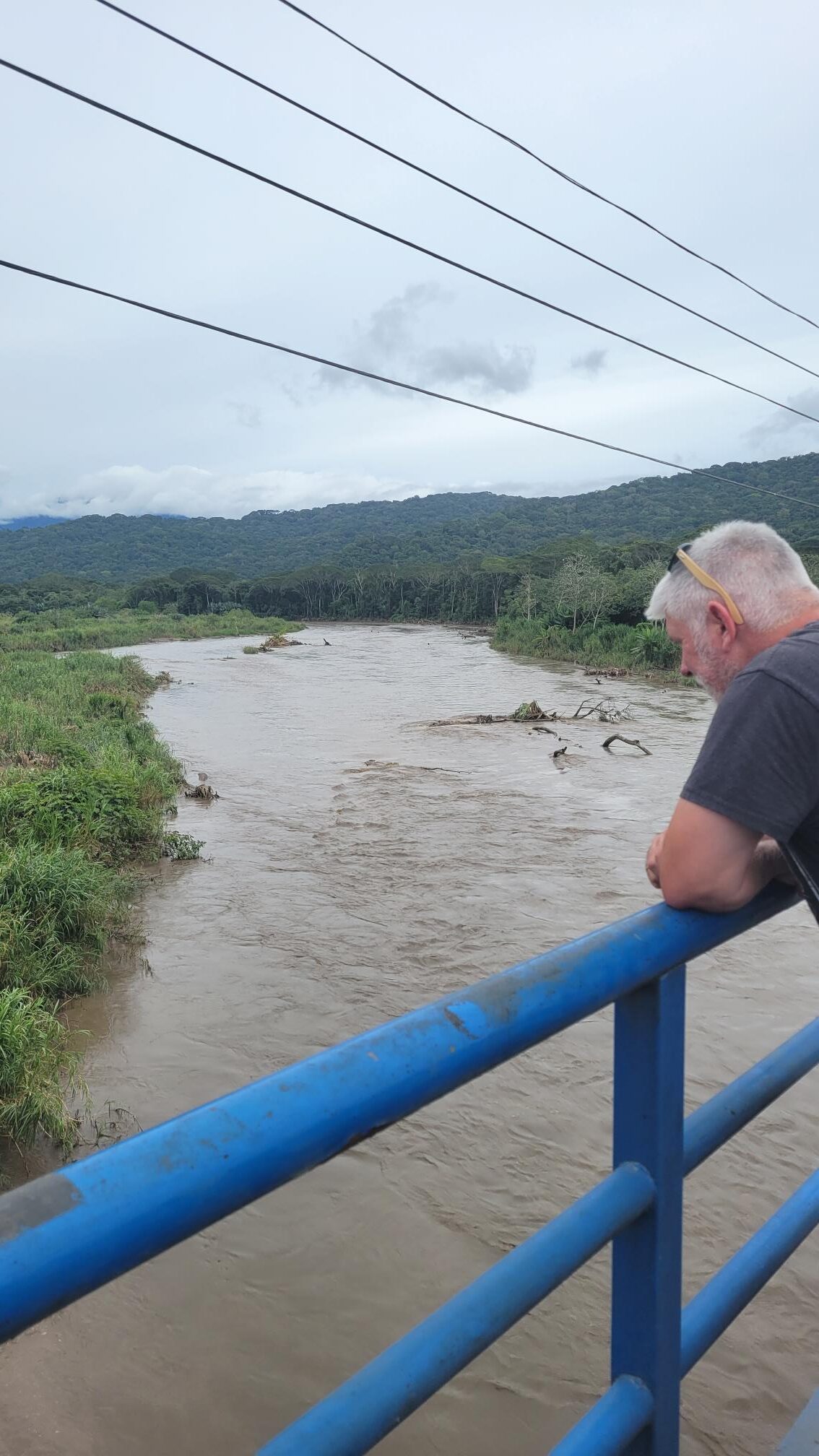 I will leave you with a picture of the hubby looking at the South American crocodiles in the river below. This is further down and yes, Costa Rica can boast some large crocodiles. They like the rivers near the ocean and these were some really large specimens.