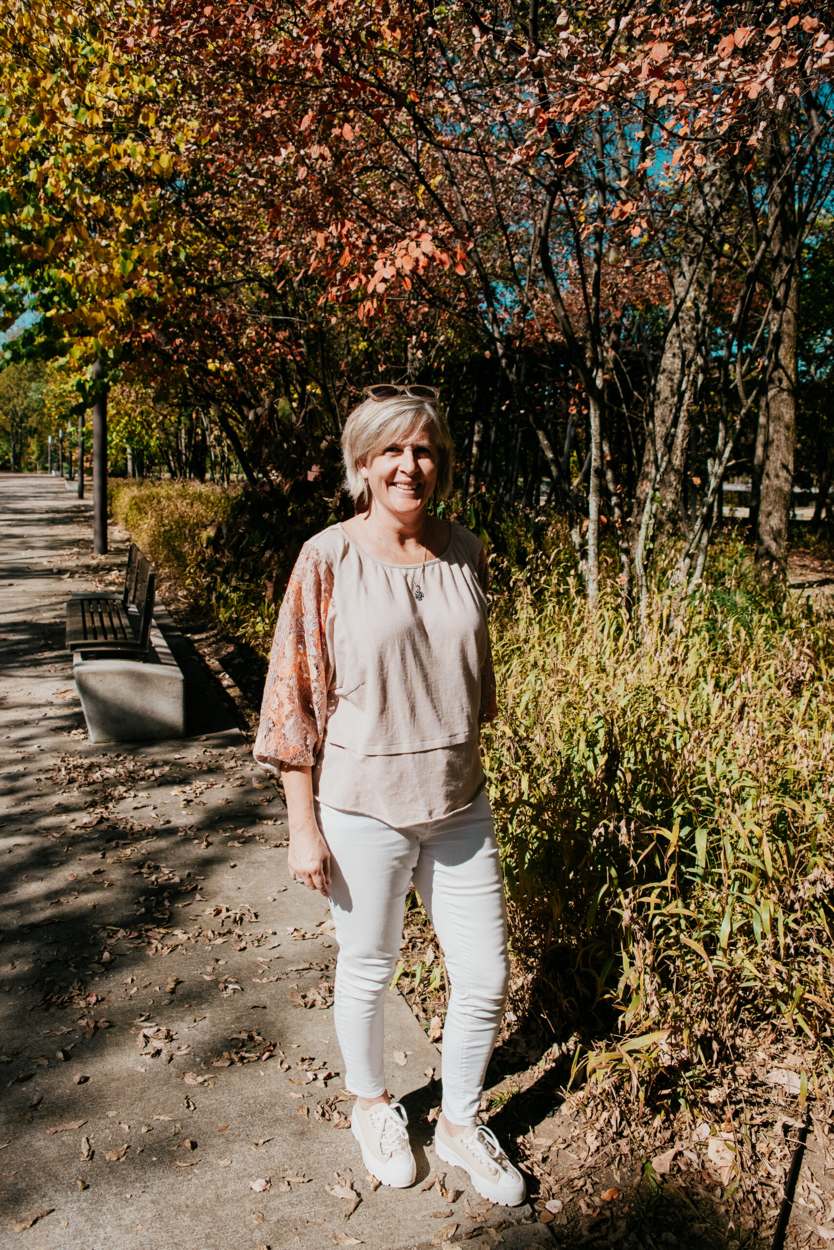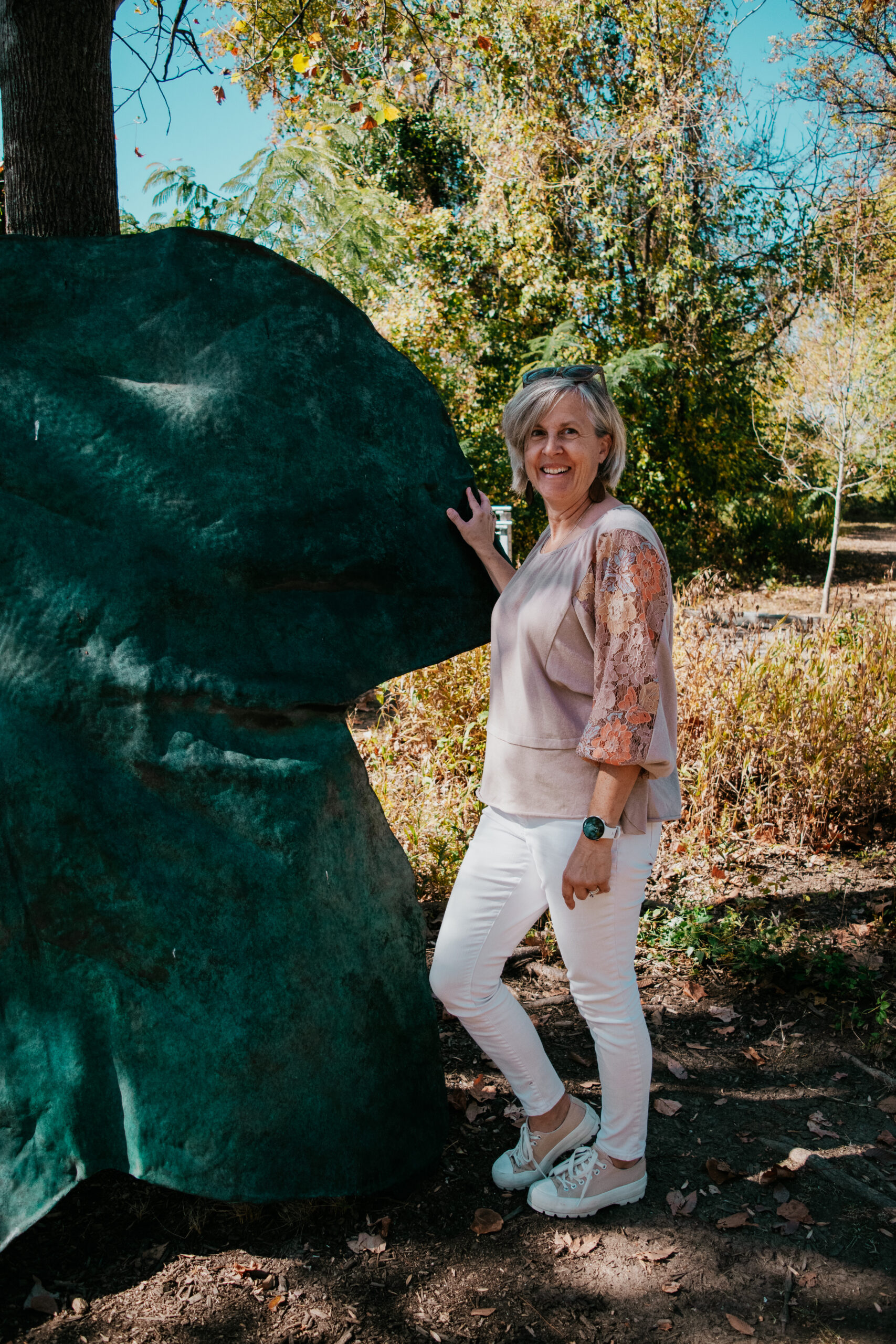 Haven’t been to Chattanooga in years. East Tennessee was my old stomping grounds in college but I guess Chattanooga is more southeast. My sister just drove up there from Crossville, TN and said it was lovely. Your photos confirm that. And what a pretty top. Really like the detailing on it, the feminine sleeves, the cut of the bodice. Great color to pair with your white denim for fall. I don’t wear my white in the summer much either for the same reason – too hot. Need to break mine out for fall.