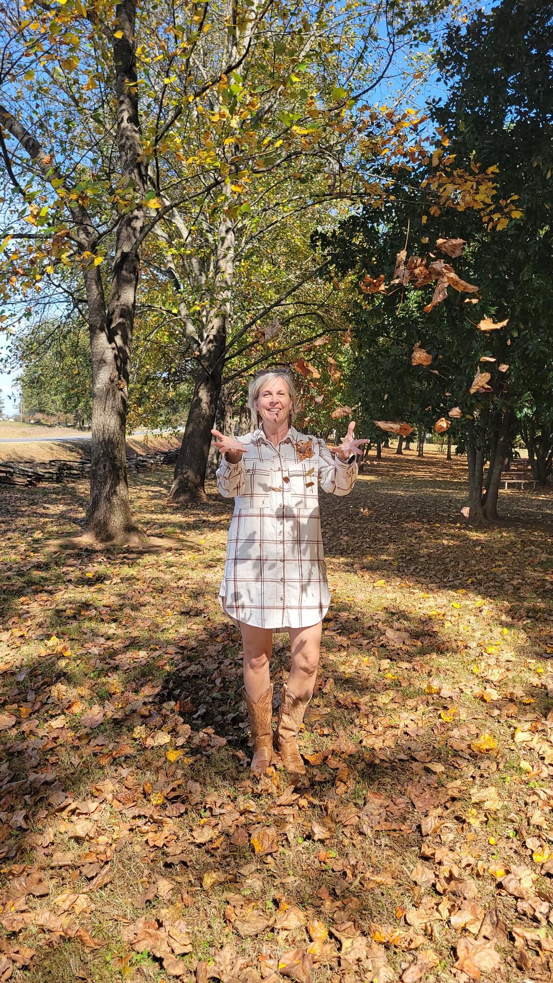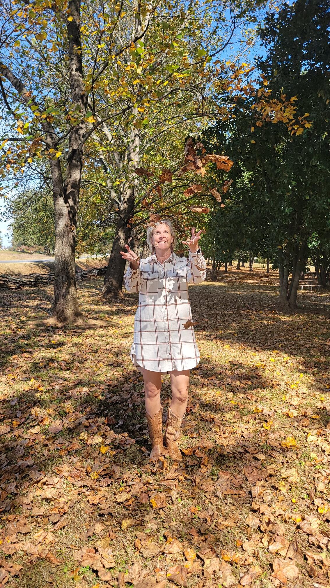 I usually don’t end up wearing my Thanksgiving looks it reality since we have been spending Thanksgiving at the beach the last 5 years but I love coming up with ideas that would work for family gathering throughout the fall and into winter. Here are the last two years’ outfits (mini skirt and sweater, denim skirt and shacket, and denim and poncho looks). This year’s Thanksgiving outfit features a Target Plaid Shirt dress. The funny thing is that I tend to take these pictures in the same location each year as I usually take blog pictures early and take my Thanksgiving outfit pictures mid October when the cotton is fully in bloom. However I had taken some pictures there already so these are in the picnic area at the Indian Mounds.