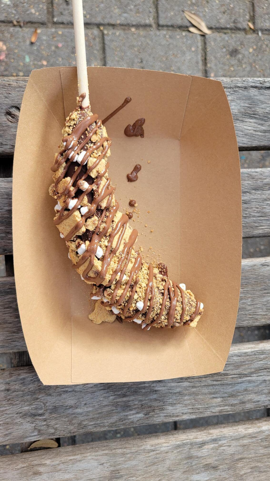 We then had some chocolate dipped treats from Nigel’s Bananas and they were very tasty if a little too big and sweet: definitely a sharable snack. Mine was the cheesecake on a stick dipped in chocolate and oreos.