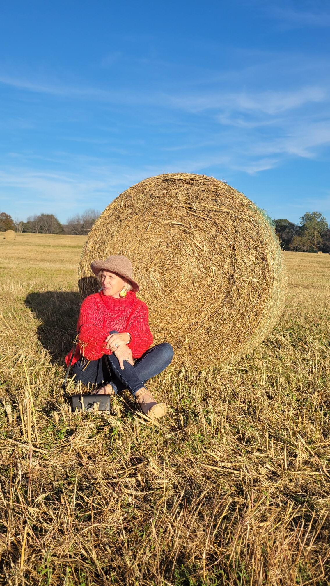 I love that first photo…way to capture my attention! And, I adored your reel on Instagram pushing that bale! I’ll bet it was really heavy! You look fabulous in these jeans and I love how you’ve styled them!