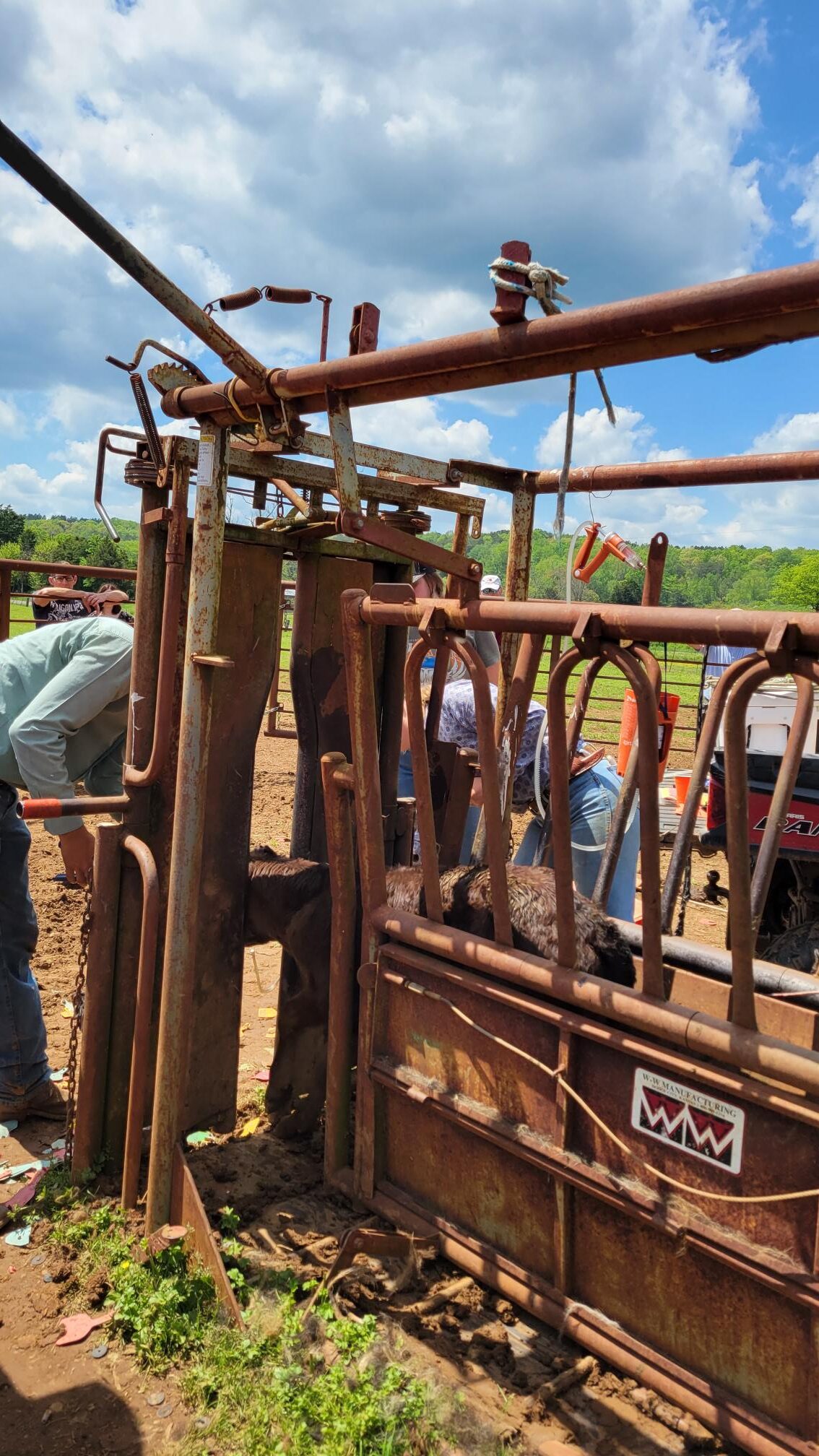Last month, N. and I headed about 30 minutes from home to go observe my friend and her family work their “cattle”. We arrived for the tagging of the calves, vaccinations and … castration!