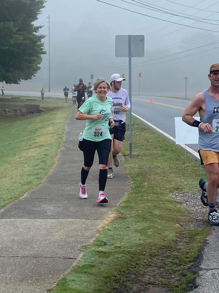 We increased our regular distance to 7 to 9 miles most Saturdays and a few runs were over 10 miles. Some of the gals made it to 13 miles, but I think I was out of town for that one. We were able to run miles less than 10 minutes with ease , but the weather was typically in the 50s when we ran. We had a mild spring until the week before mother’s day weekend which was when we raced. I love these early morning runs as the scenery is pretty and we sometimes can catch the sunrise.