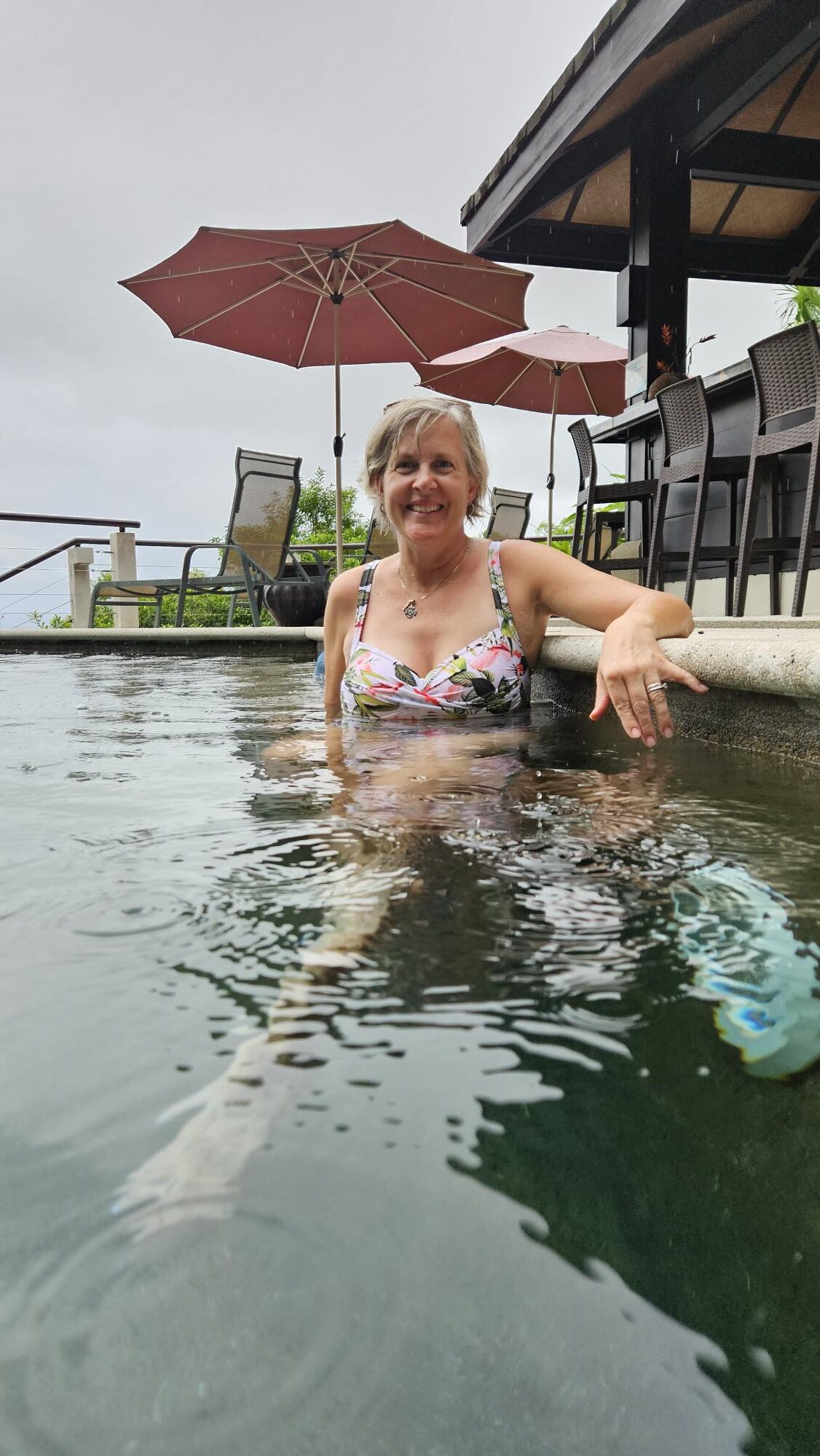 We used the pool even when it rained as long as there was no lighting. The average temperature during our stay was in the mid eighties which was perfect for pool time.