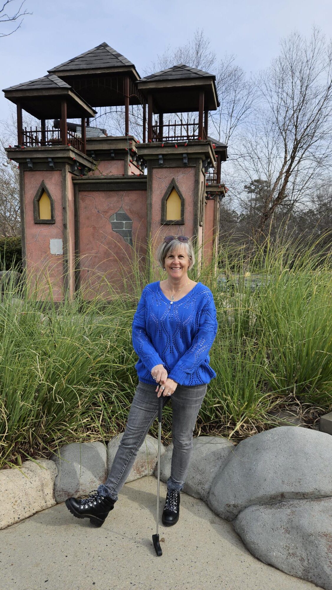 The mini golf setting was so cute, I decided we should take some pictures for the blog as we waited for each other’s turn. I was dressed knowing that we would be outside and knowing that it was going to be cold.