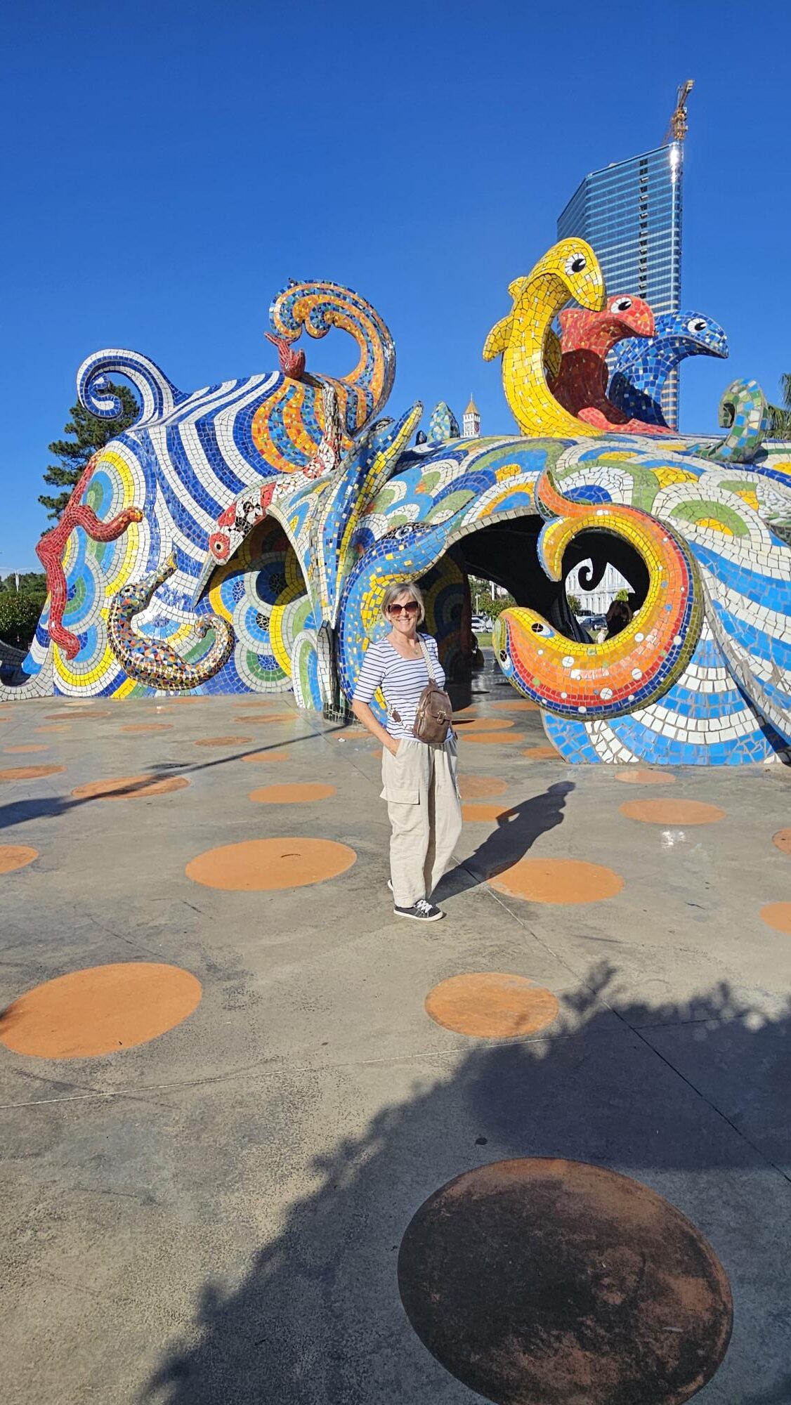 The road trip to Batumi took about 5 hours traveling through mountains, tunnels and the countryside. There were some stretches of highway, but the highway and tunnels are not all completed yet. I knew the linen pants would be nice for the car ride and once we got to Batumi and checked into our Hilton hotel, we went by the beach.