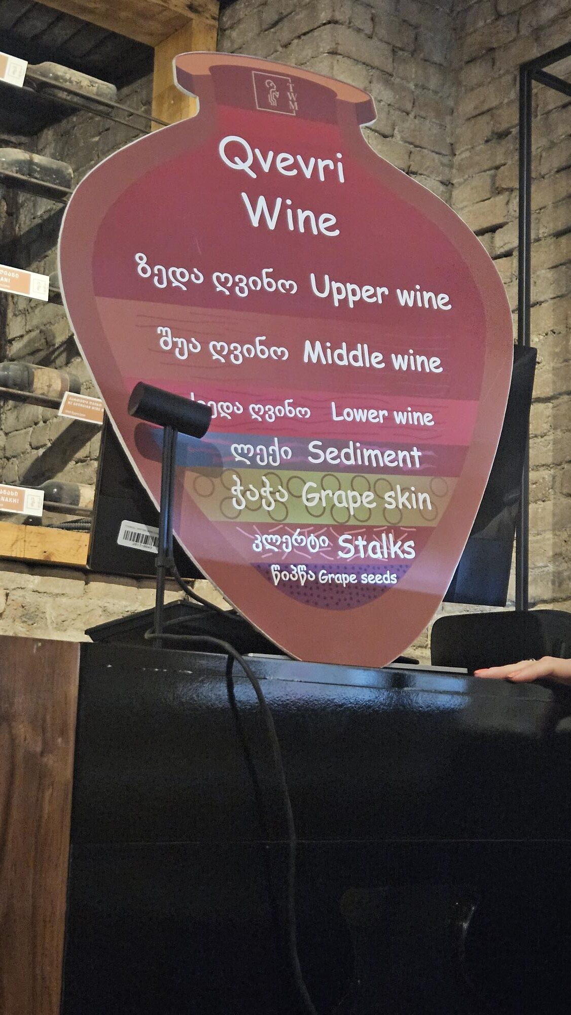 The museum is underground this building which holds another museum as well as some fancy shops below. Our guide spoke great English and we learned a lot about the special process of qveri wine: Georgian wine made in clay pots. Above, our guide is showing us the tool that is used to clean the qveries, a stick with cherry bark. The bark is a natural antiseptic and the large qveris take a couple days to clean, once a year. To her right is a pumpkin on a stick to take liquid out of the qveri.