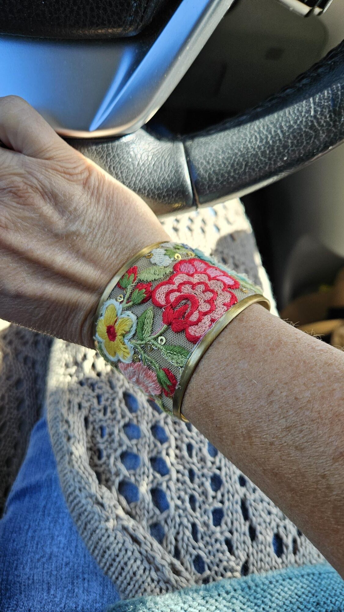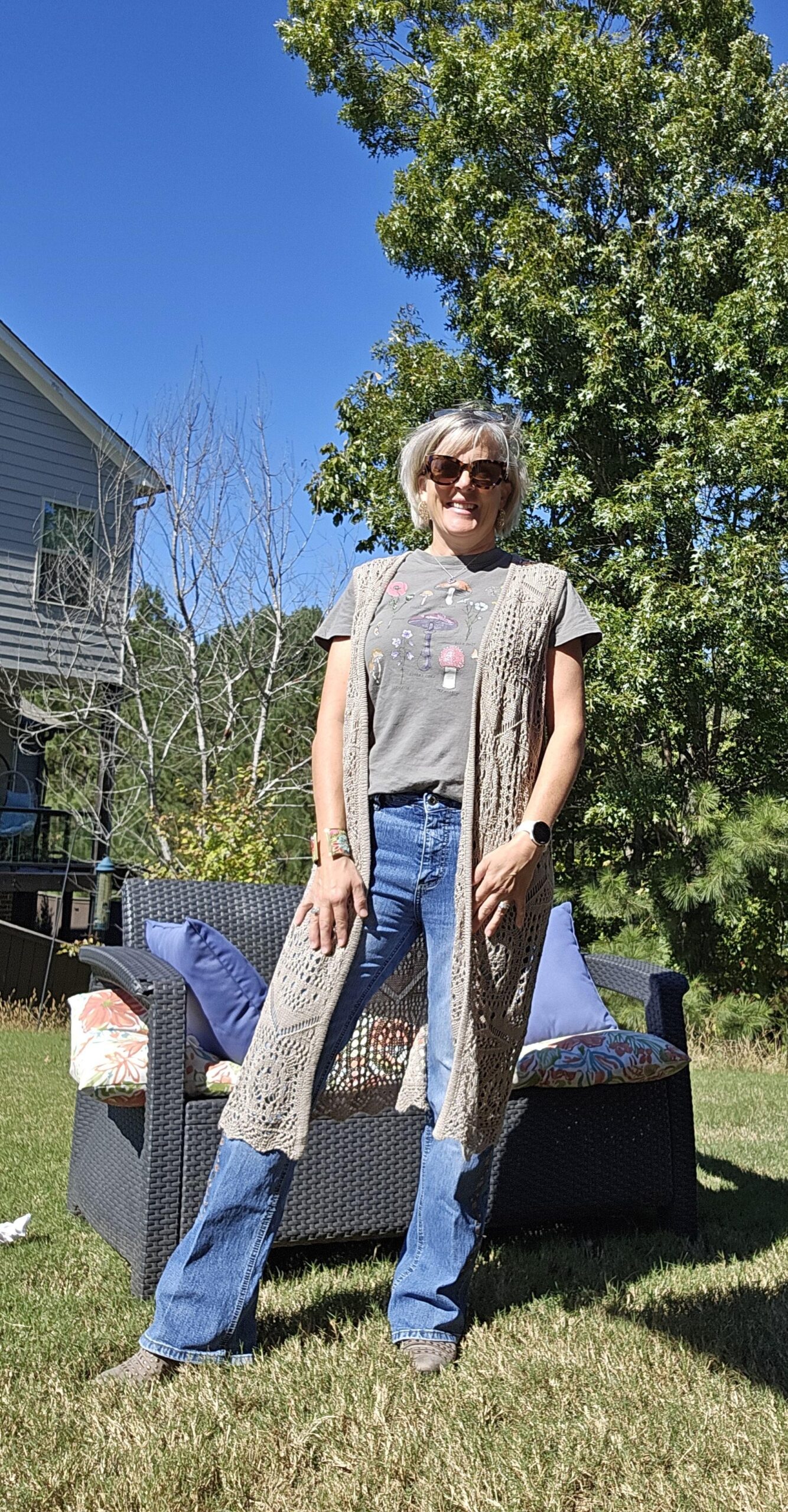 My last outfit combines the newly found crochet maxi vest with my Arizona thrifted embroidered jeans and hand me down booties from my mom. The cuff is also from Arizona from a small boutique. I enjoyed wearing this outfit and plan to wear the vest over a black dress next week, combining it with cowboys  boots.