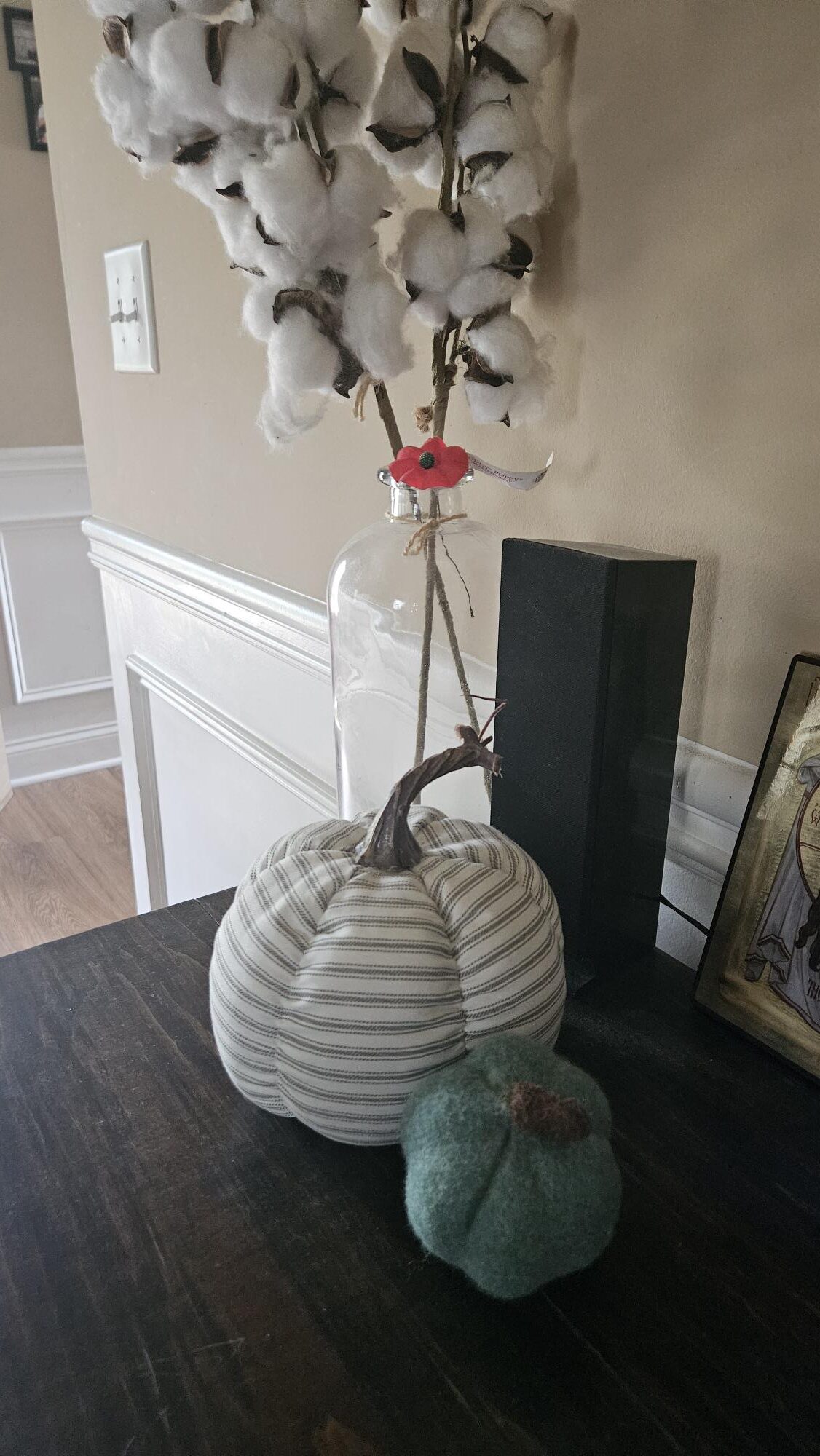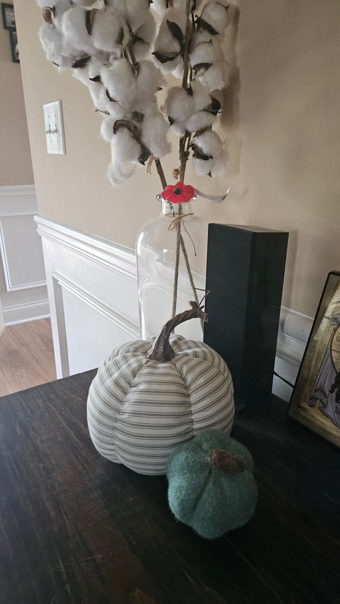 You have some really cute fabric pumpkins! Very cute decor. I love having touches like that throughout the house.