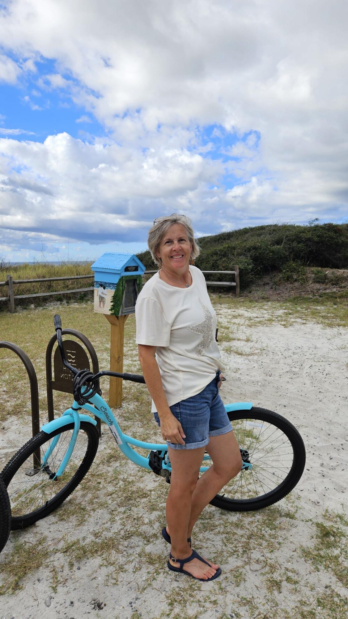 We did a lot of biking on this beach vacation: it’s a great way to exercise, enjoy the fresh air and work off the ice cream you eat every day! The skort worked out well for riding!