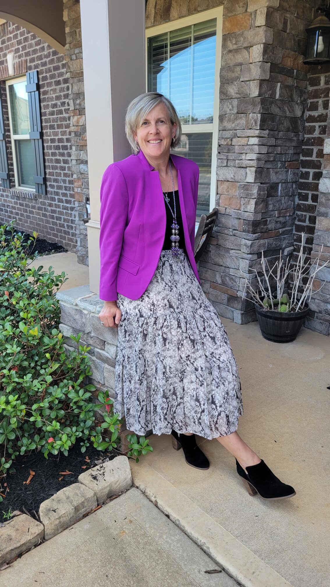 Who knew a purple blazer was so versatile? Love every look! This color looks amazing on you.