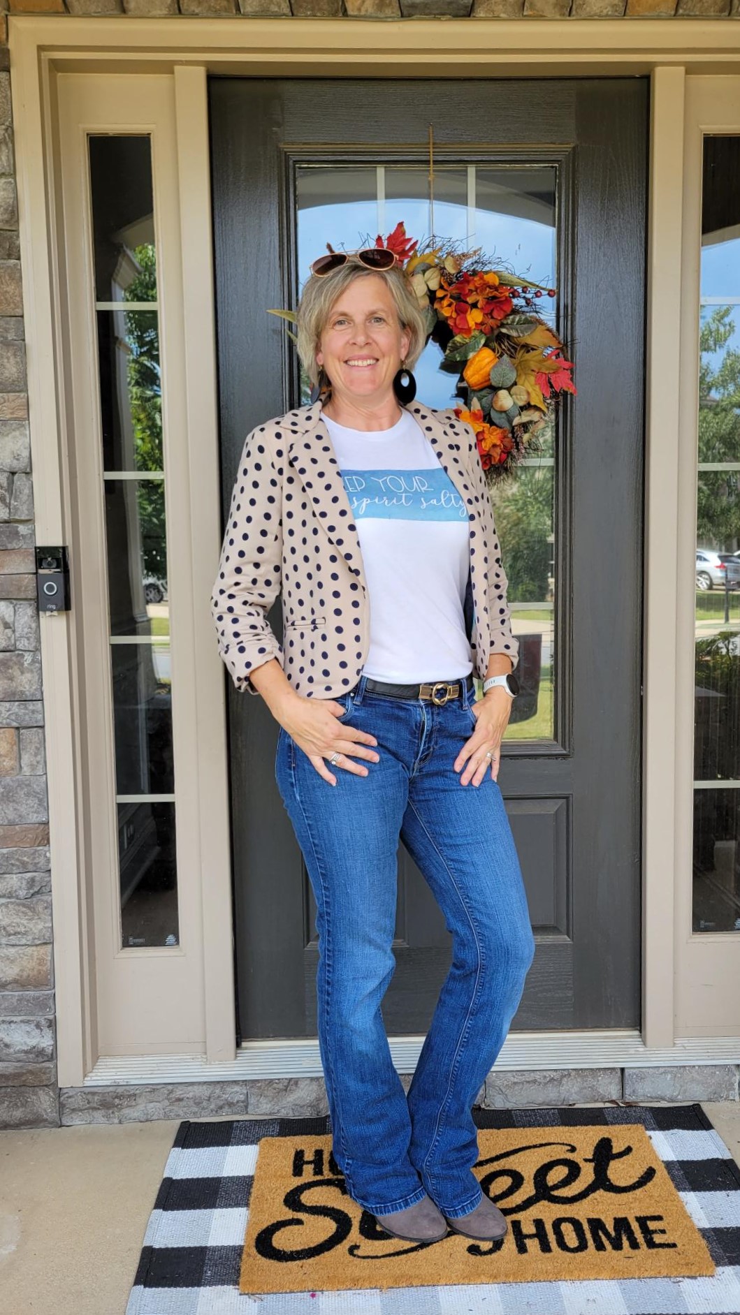 This is a super cute blazer! I love it with the graphic tee and flare jeans especially!
