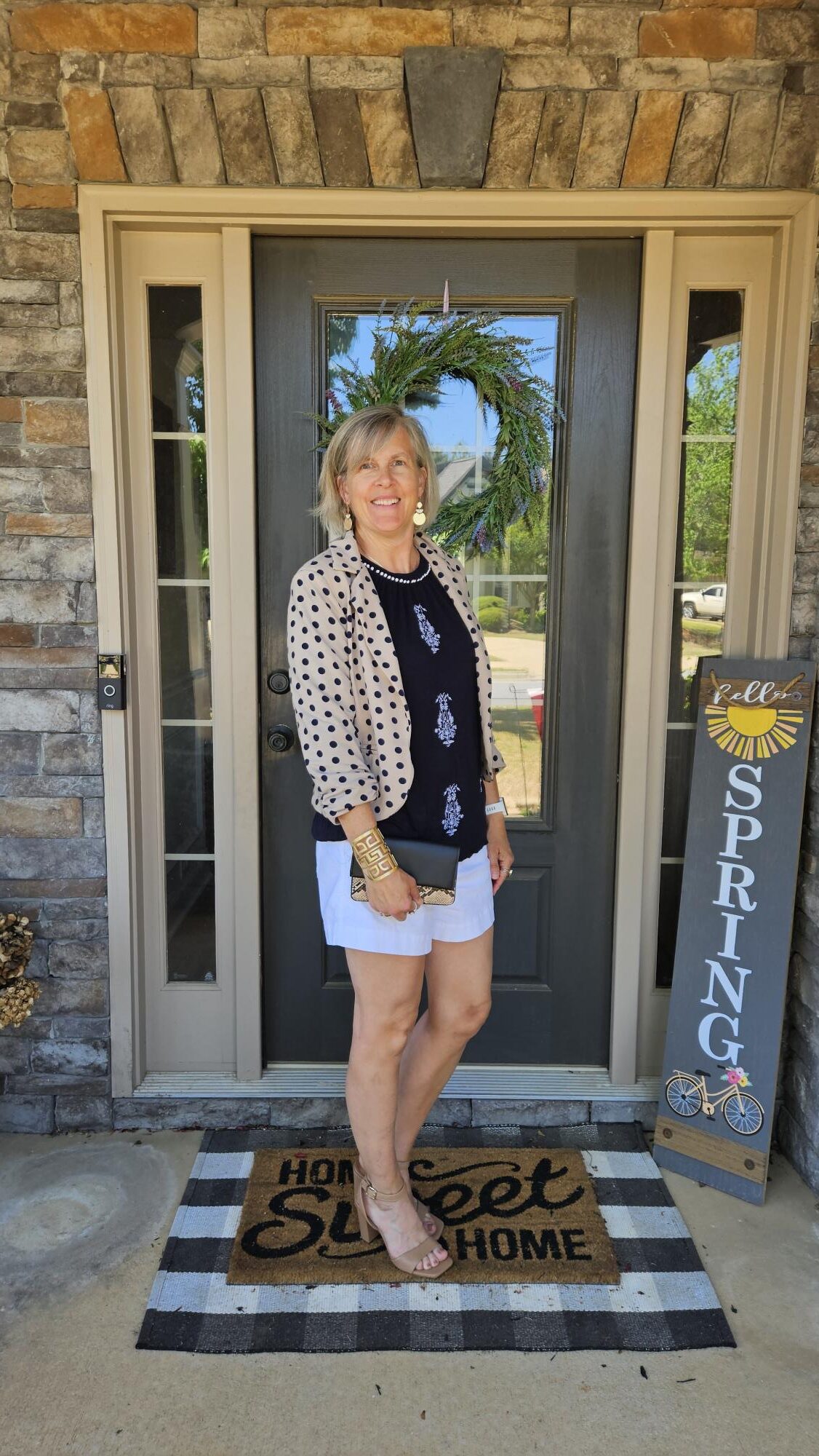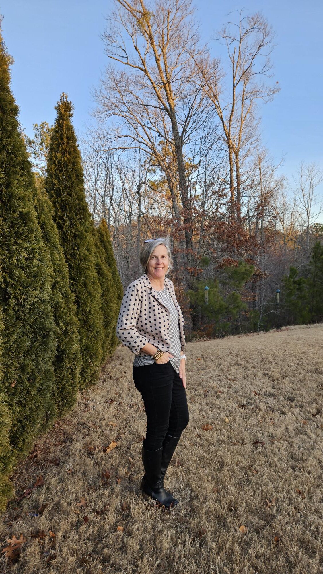 What a cute and versatile jacket! It is getting to be the time when I can wear them again with the weather getting warmer. Love the polka dots!