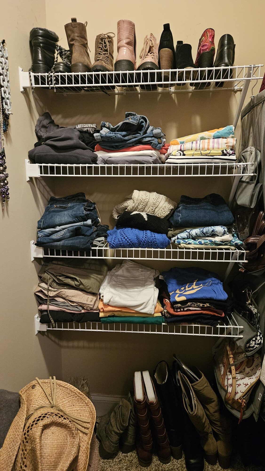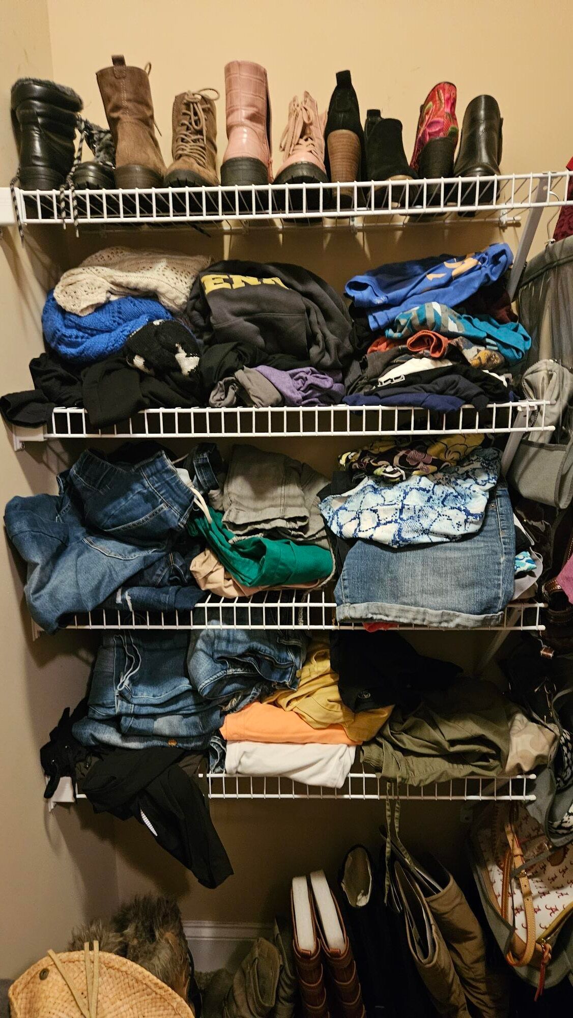 - I do not like visual clutter, so having less clothes out allows me to have some breathing space in my closet