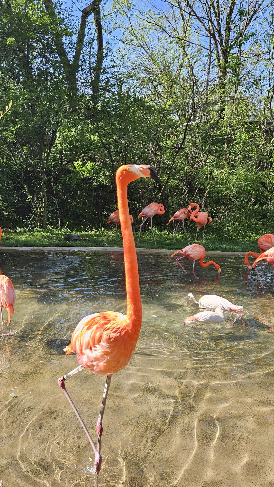 We have flamingos at our zoo, and some really old turtles. We don’t go often though. When we visited last time, we took a tour and learned how they really take care of the animals which made us feel better.