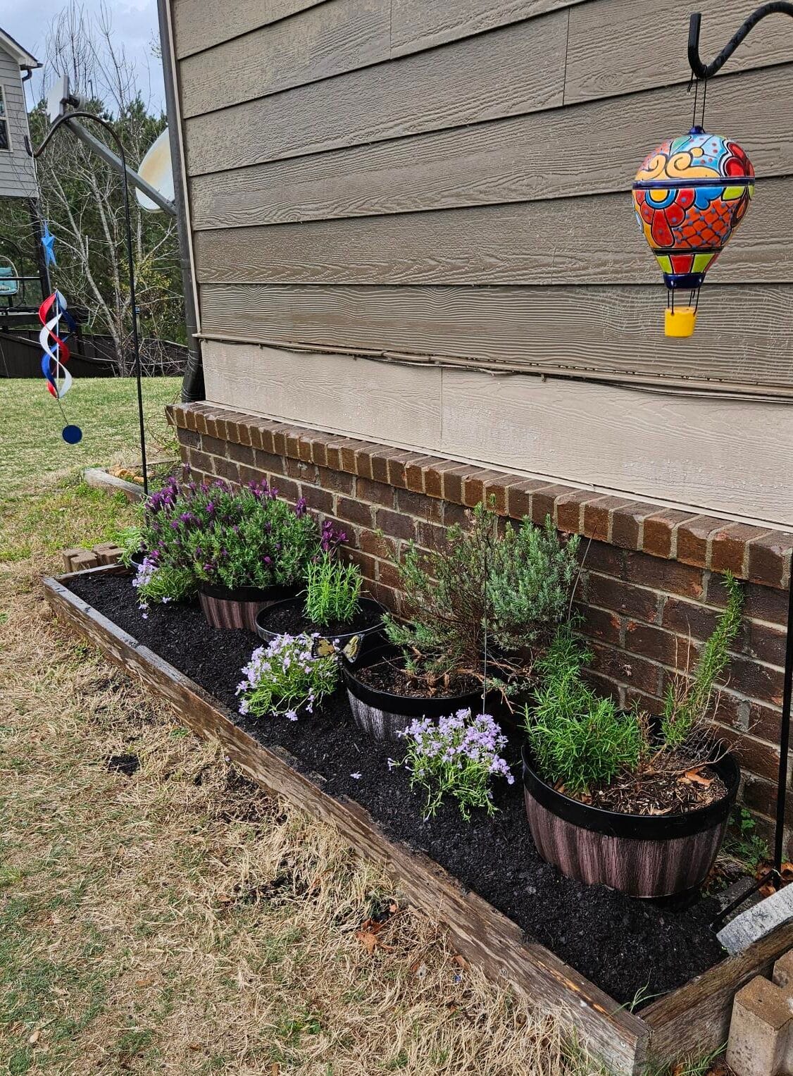I planted some phlox, some more lavender and one more rosemary plant and a couple weeks later, the kids, my sis in law and I planted some zinnias, marigold and a few other seeds. Hopefully we will have a pretty square patch of flowers this summer.