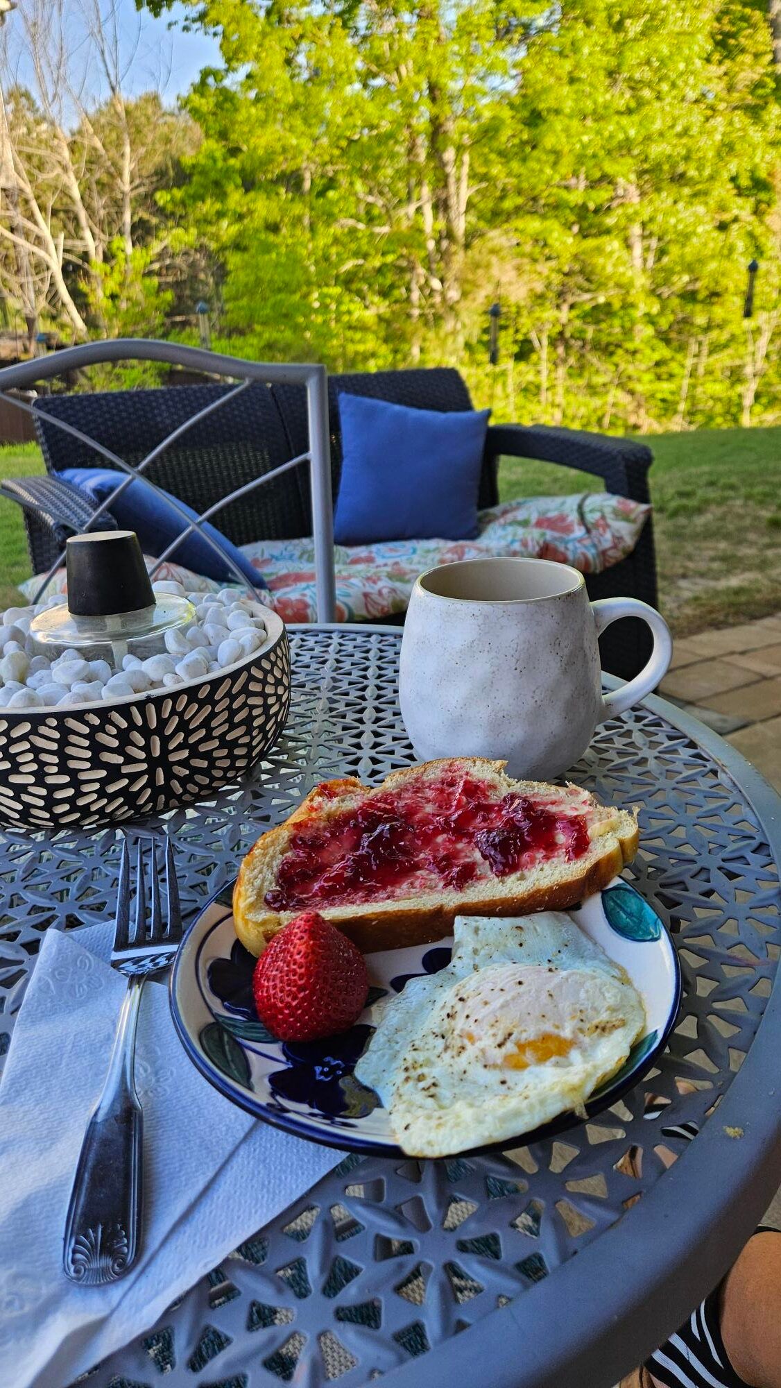 - start having morning coffee on the porch