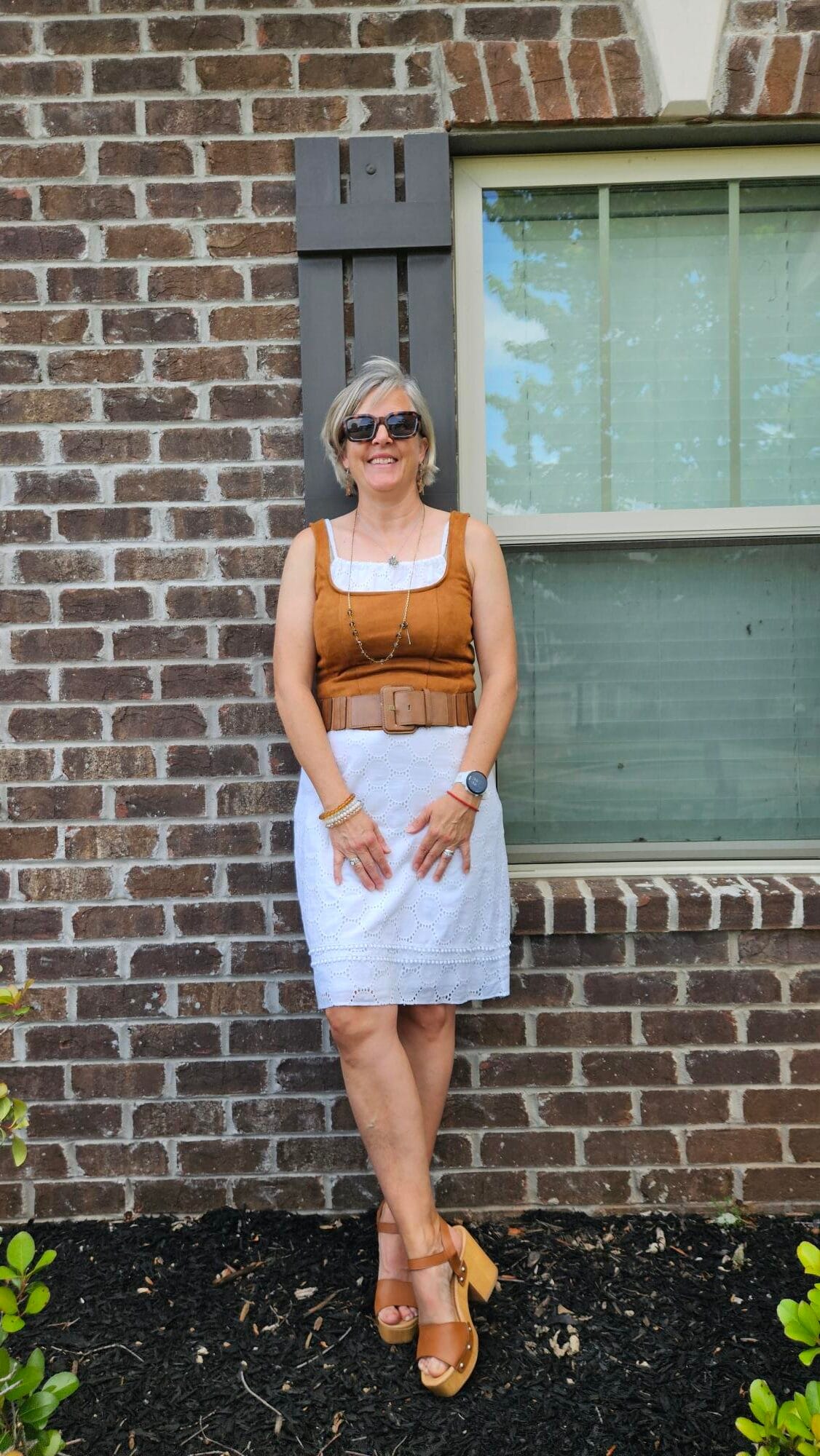 Love all of these combos. Wearing the corset over the chambray is really out of the box for me but it works so well. I think my favorite combos are the short white skirt with the corset and the first look that you wore to your son’s school…love the mix of textures and lengths. Beautiful YOU!!