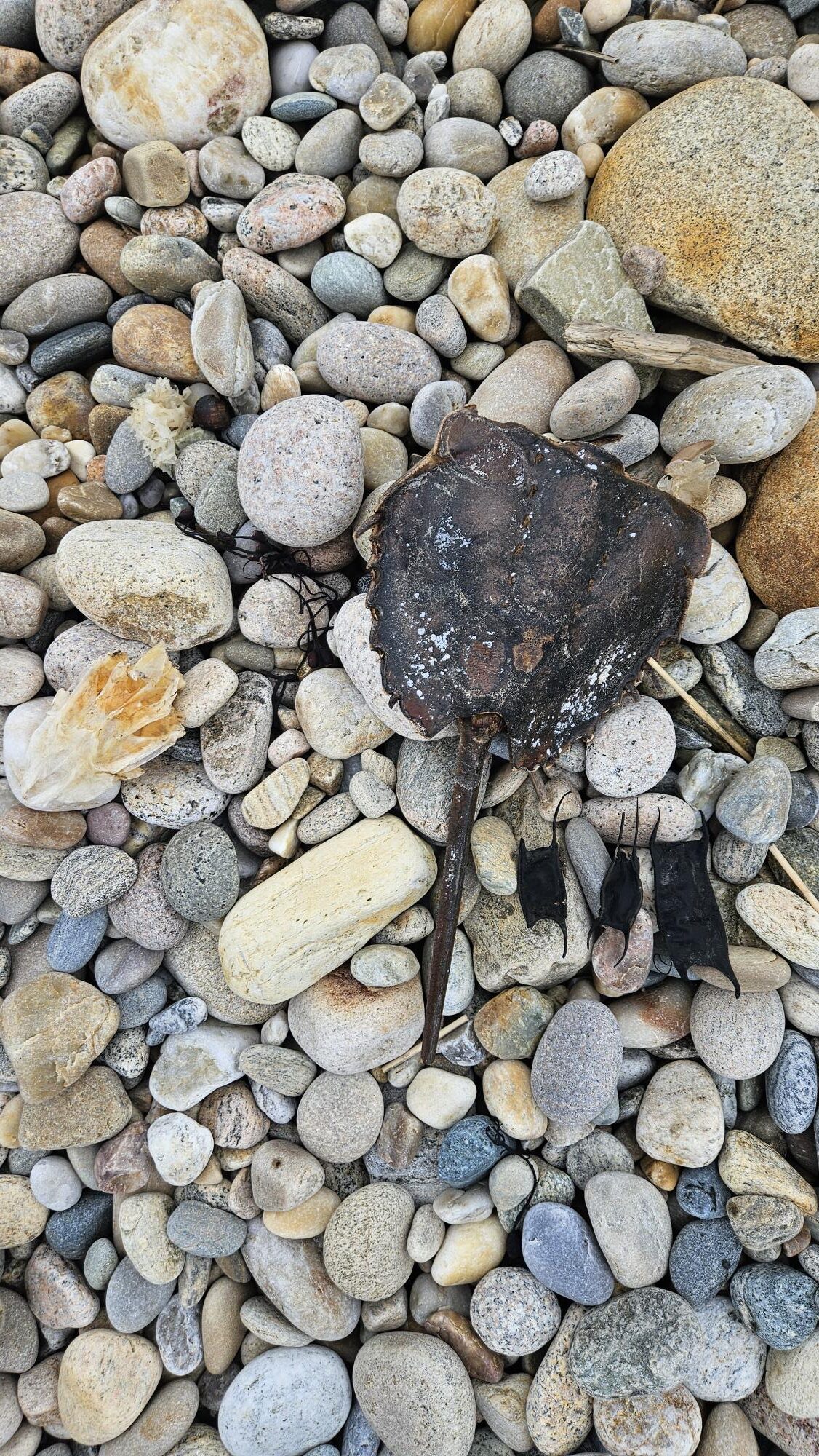A few other items we found were some dead fish remains, horse shoe crabs, crabs and shark eggs.