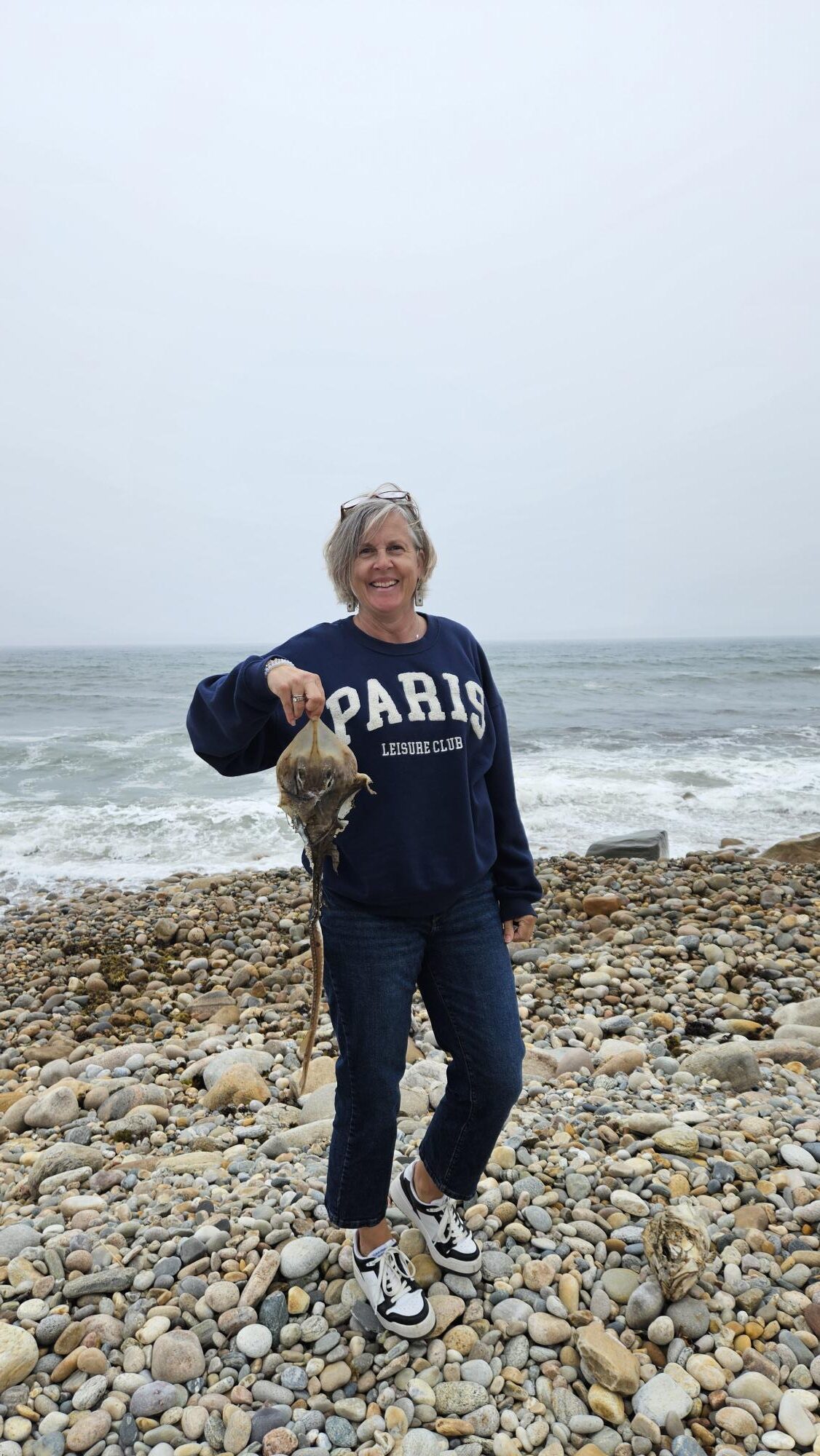 We spent an hour or two on this beach and in the state park. Above my husband is looking out at the ocean as there were 2 sea lions in the water (or seals). He enjoyed standing there and have the water break on the rock he was on. It was also really fun to find a variety of dead things on the beach, animals that had been eaten and washed out on the shore (or vice versa). Below I am holding a dead sting ray!